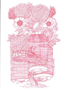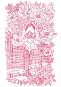Cara Mia est une artiste multiforme, illustratrice, collagiste, graphiste, photographe et poétesse, formée aux Beaux-Arts d’Amiens. Installée à Lyon, elle se fait connaître via les réseaux sociaux et travaille pour des salles de concerts, réalisant affiches et pochettes d’albums. Ses créations mêlent couleurs et techniques variées, capturant des instants éphémères à travers la photographie et des illustrations poétiques. Elle participe à des expositions engagées, comme celles contre les violences faites aux femmes, et illustre le Festival de Cinéma queer de Lyon “Écrans Mixtes”. Pour Cara Mia, la création est un exutoire constant pour explorer de nouvelles réalités et emmener le spectateur en voyage… son voyage !