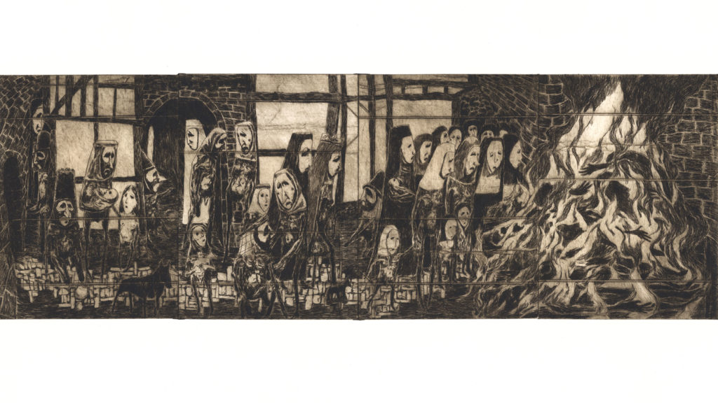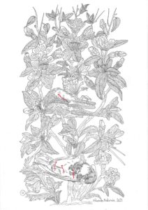Blanche Berthelier expose depuis 2010, après un passage aux Beaux-Arts de Lyon. Son univers explore les oppositions du noir et du blanc, de l’ombre et de la lumière, sur de grands formats au fusain et de petits dessins minutieux à l’encre. Ses images, silencieuses et autonomes, surgissent d’un processus sensible. C’est une tentative de rendre visible ce que le verbe échoue à exprimer, une mise en forme de contenus inconnus que le dessin a la capacité de composer pour en livrer un sens possible.