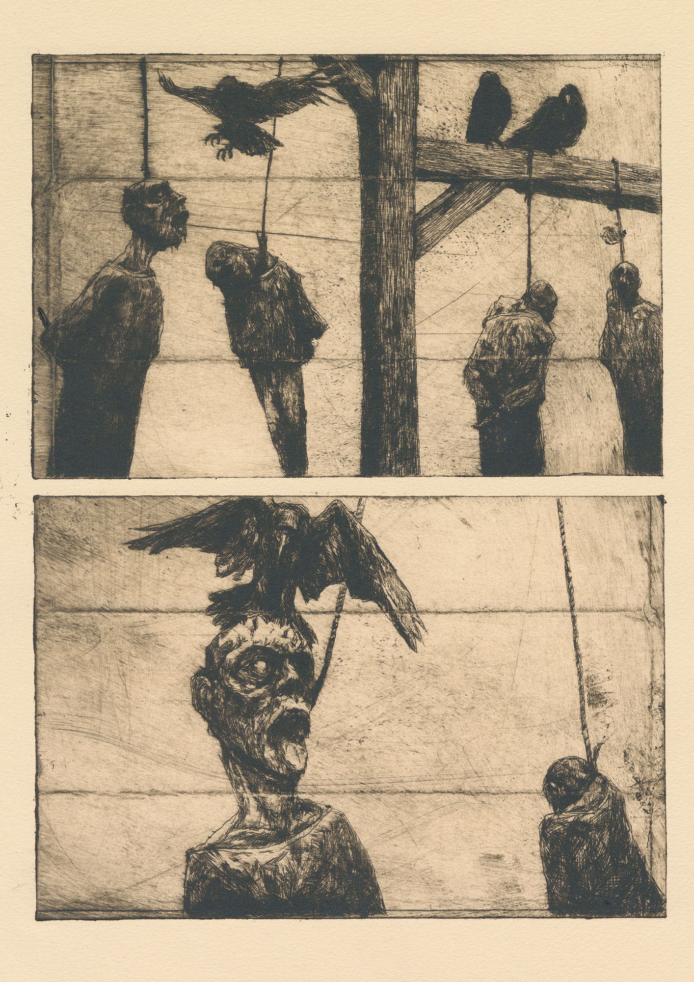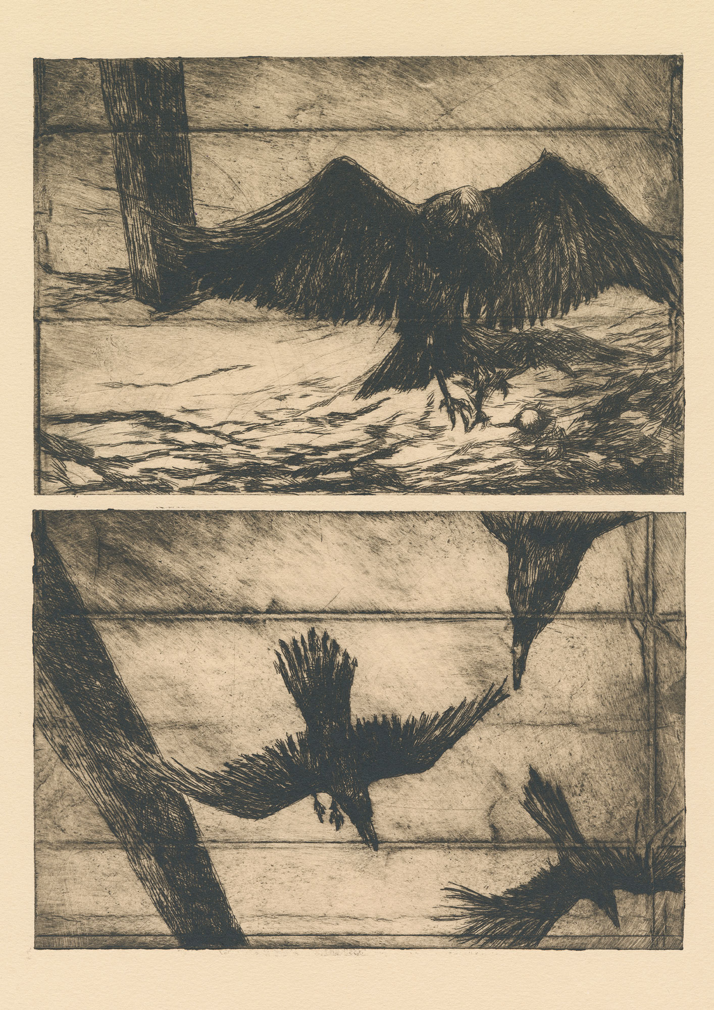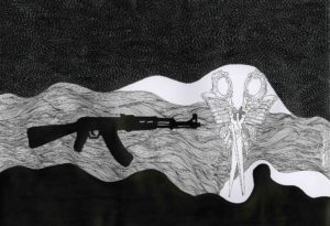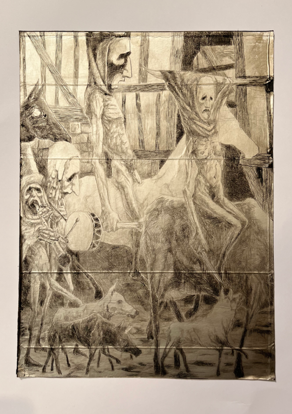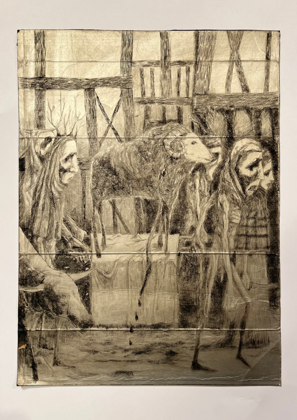 Reza Kabirnia est un artiste plasticien installé à Lyon depuis 2019. Sa pratique explore les perceptions intérieures à travers le dessin et la peinture. Il crée des paysages mentaux, faits de strates et de silences, où mémoire, rêve et sensation se mêlent. “Mes œuvres sont des espaces ouverts, des cartographies intuitives où l’inconscient trace ses propres chemins.”Pour cette exposition, il présente une série inspirée par la symbolique du corbeau : “ Cette série est née de ma fascination pour la nature et la symbolique des oiseaux, en particulier le corbeau. Considéré comme intelligent mais souvent associé à des valeurs négatives, il m’a mené à la mythologie grecque où, selon le mythe, Apollon le transforme de blanc à noir par colère. ” Ces dessins prolongent cette exploration graphique du mythe et du symbolisme.