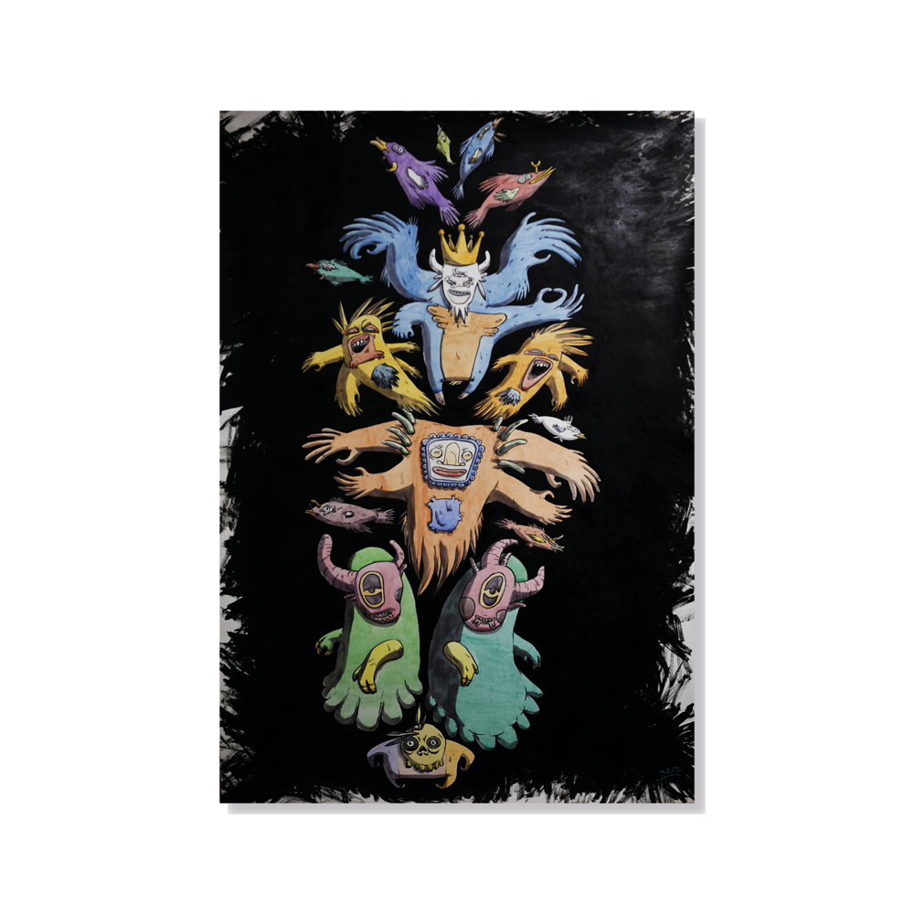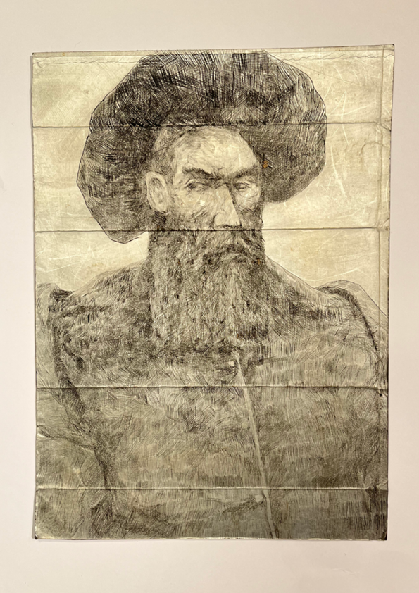 Formé par le dessin de modèle vivant et les heures passées au musée, il revendique une approche libre : “J’aime explorer différentes directions.” Pour les 30 ans d’Autour de l’Image, il revient à la gouache de son enfance, appliquée sur kraft, pour revisiter avec fraîcheur et humilité de grands portraits de l’histoire de l’art. Un hommage léger et respectueux à ceux qui l’inspirent, en mettant littéralement ses pas dans les leurs.