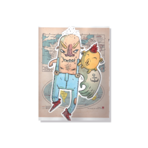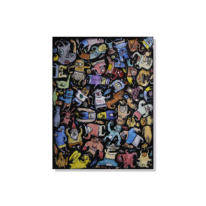 Peintre, vidéaste et graphiste né en 1967, Olivier Devignaud vit et travaille à Saint-Étienne. Son style graphique, volontiers provocateur, puise son inspiration dans le langage publicitaire, l’art graphique et la figuration libre. Il propose une image critique de notre société de consommation. Les mots et la typographie prennent une dimension existentielle dans son travail de “recyclage”, où ailes d’anges, Vanités, objets usuels, références théologiques et martiales apparaissent comme des symboles récurrents, sous forme de “ samplings “ graphiques. Pour l’exposition des 30 ans de Autour de l’image l’artiste “représente un répit dans l’actualité violente du monde d’aujourd’hui, une parenthèse offerte par l’Art, la création, l’humour, la fantaisie. Je me suis amusé à créer des petits formats sur mesure, avec les techniques que j’affectionne, qui font référence indirectement à cette atmosphère apocalyptique avec humour et second degré, nous permetttant de mesurer que l’art et la Galerie qui le représente ainsi, figurent un véritable havre de paix et de bonne humeur…”