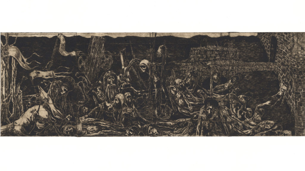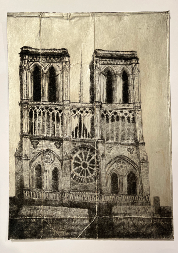 Ingénieur devenu dessinateur, Louis Rolland a trouvé sa voix au critérium après un parcours singulier. Diplômé de l’École Émile Cohl en 2023, il expose aujourd’hui pour la deuxième fois à la galerie Autour de l’Image. Sa série s’attache à révéler la beauté fragile des voitures anciennes, mais pas n’importe lesquelles : celles accidentées, où la tôle froissée dévoile presque organiquement leur mécanique interne. Une réflexion poétique sur la vanité, où chaque dessin devient le reflet d’histoires brisées, d’instants suspendus.