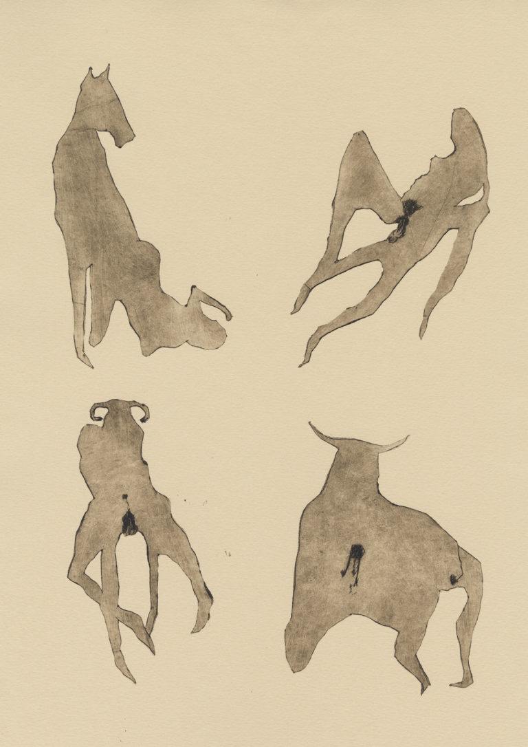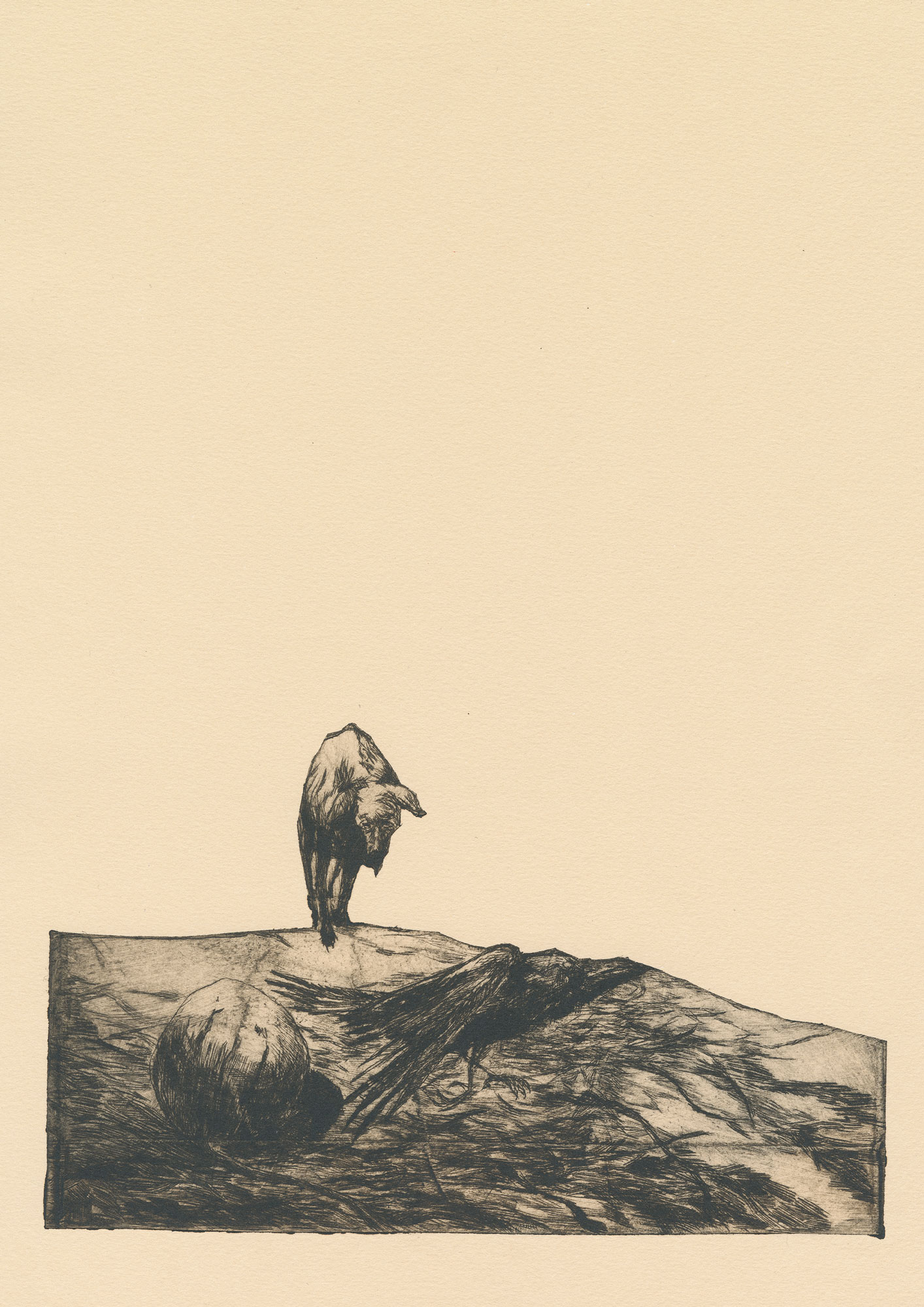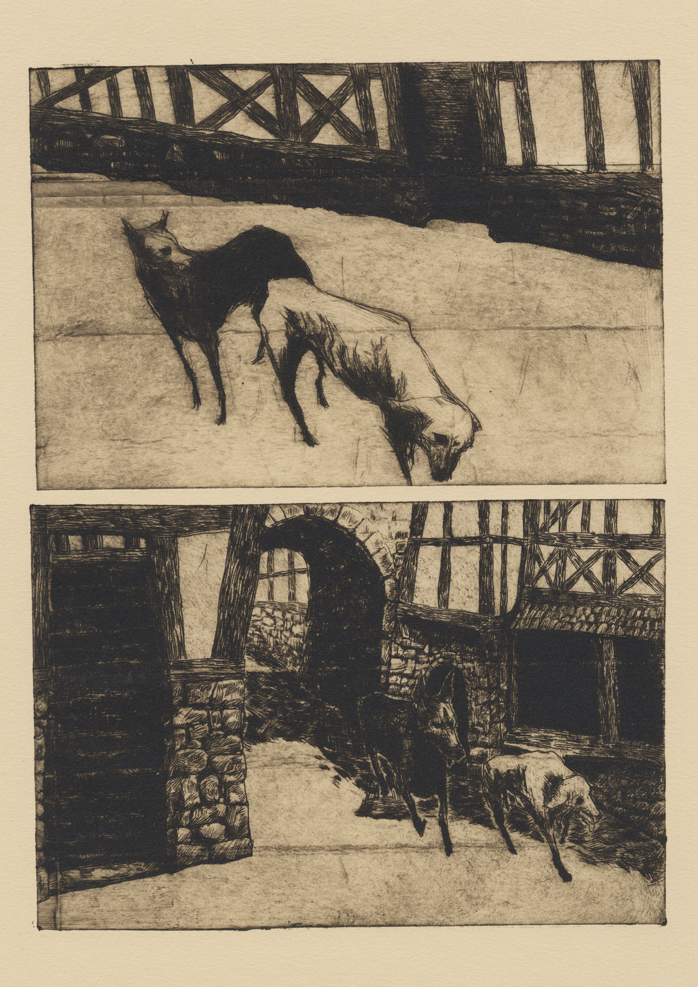 Léopold Poyet vit et travaille à Lyon depuis 2019. Après un parcours atypique (des études de médecine, puis de design) il trouve sa voie aux Beaux-Arts de Paris. Sa pratique alterne aujourd’hui entre l’estampe et le dessin. En parallèle de sa production artistique, il a également été encadreur à la galerie Autour de l’Image entre 2022 et 2024. Pour l’exposition des 30 ans, il présente une série de dessins au crayon sur papier aquarelle : “J’avais envie de retravailler sur des chiens, mais avec des images un peu sales, qui mettent en avant le mouvement. Et les aborder avec une technique plus rapide qu’à mon habitude. “