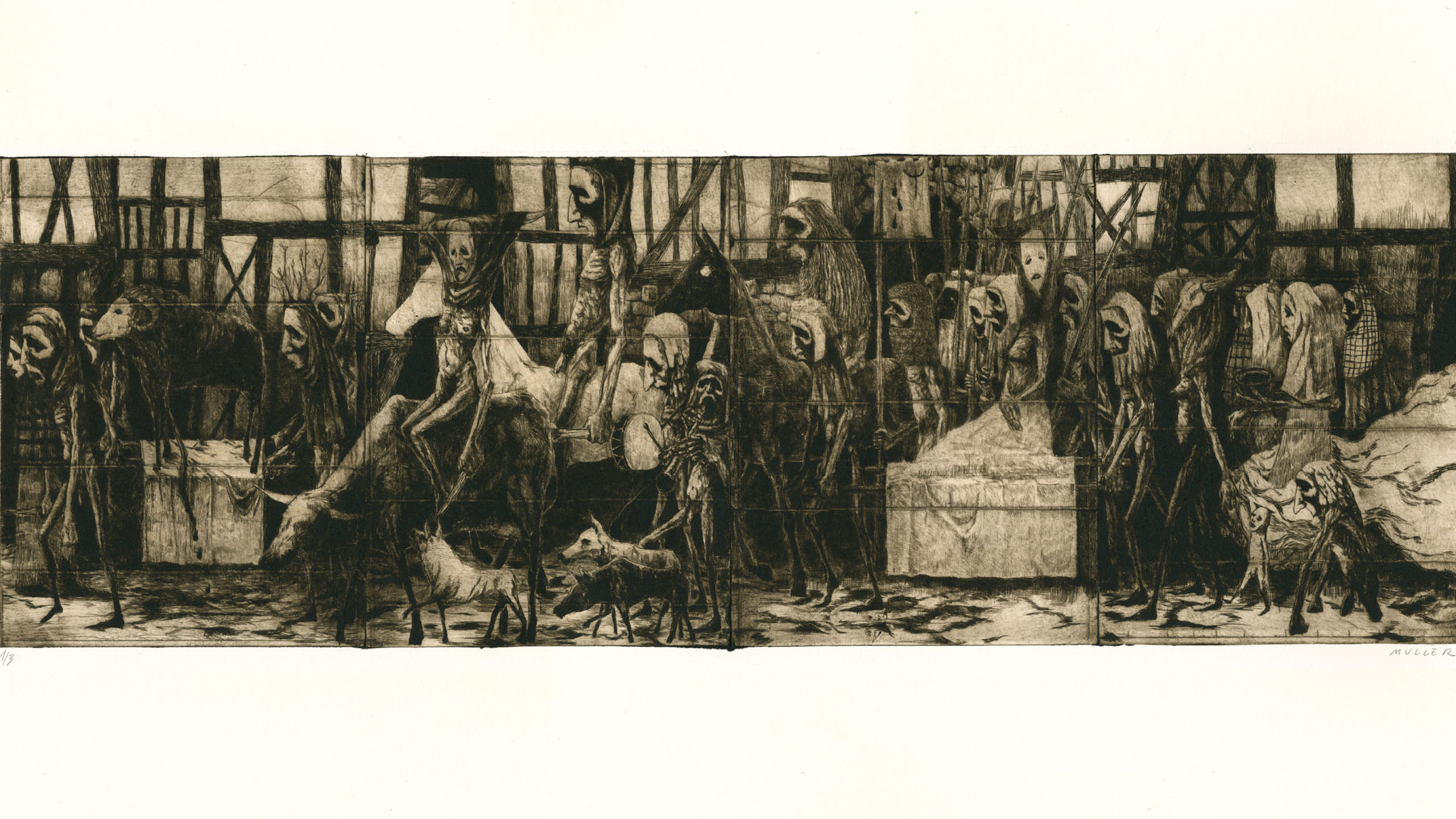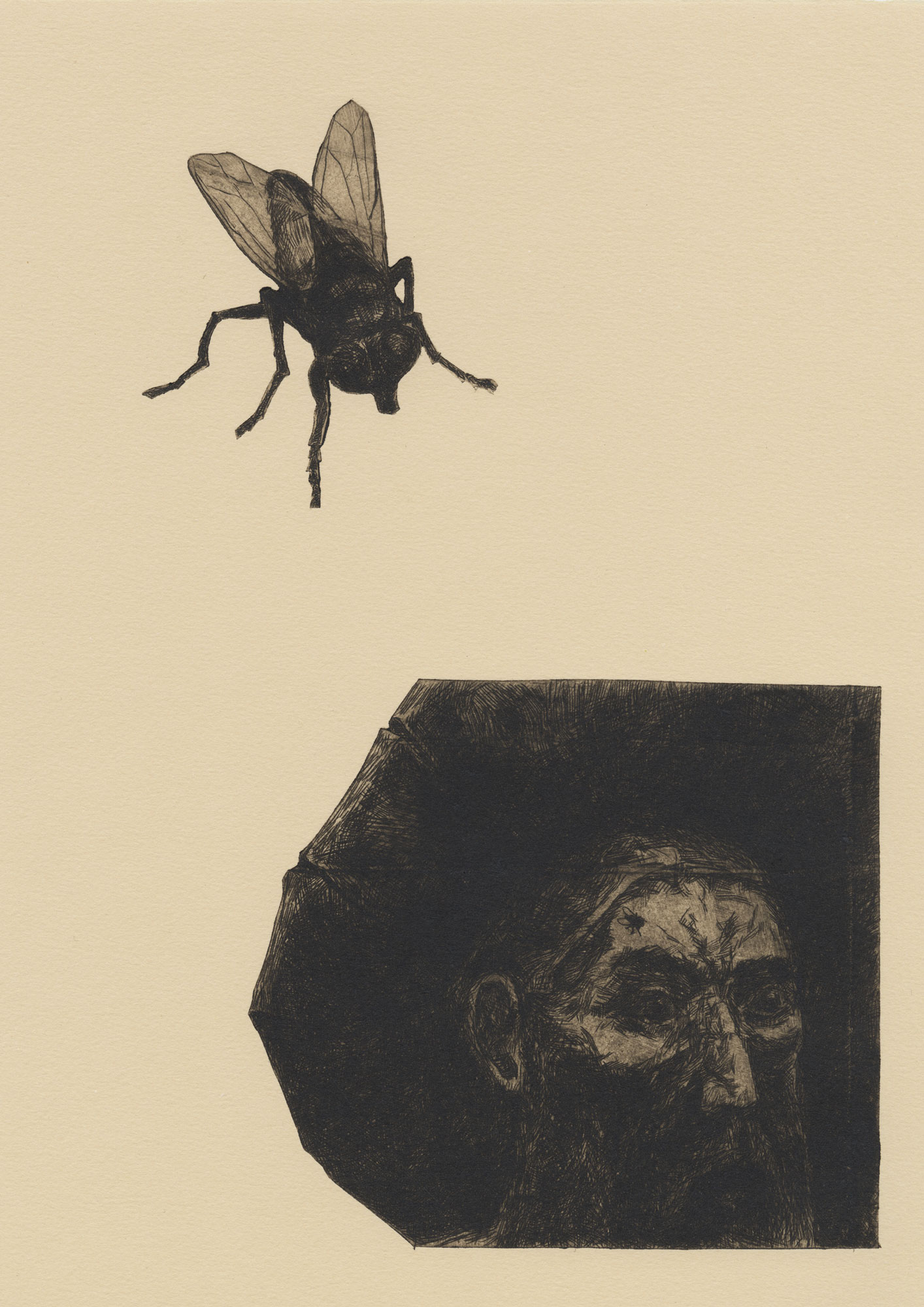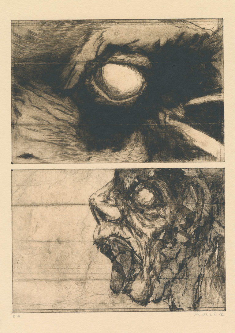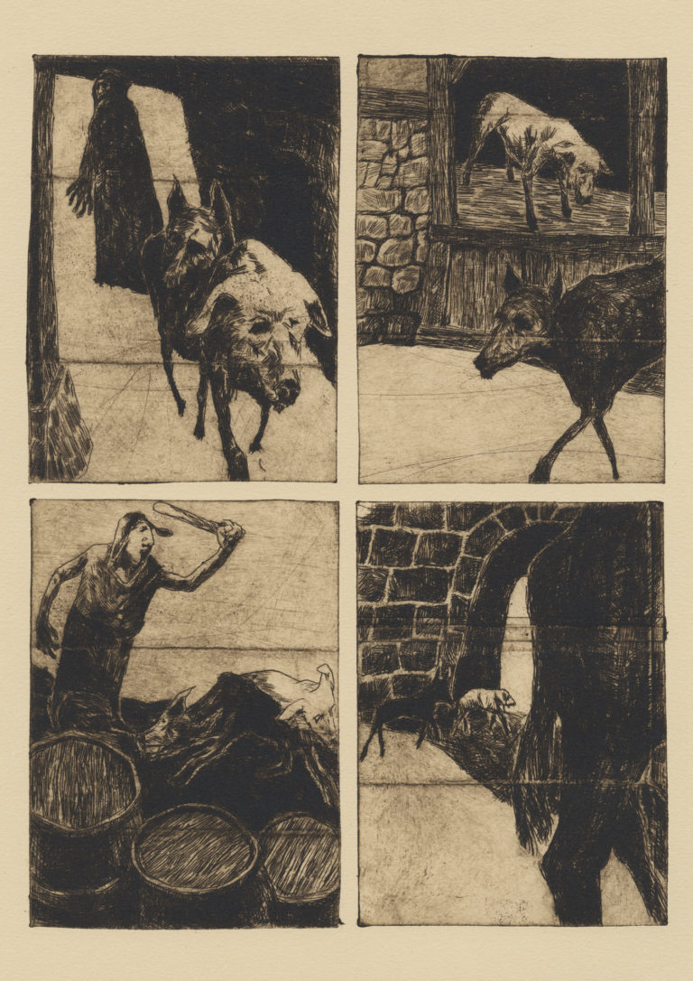 Léopold Poyet vit et travaille à Lyon depuis 2019. Après un parcours atypique (des études de médecine, puis de design) il trouve sa voie aux Beaux-Arts de Paris. Sa pratique alterne aujourd’hui entre l’estampe et le dessin. En parallèle de sa production artistique, il a également été encadreur à la galerie Autour de l’Image entre 2022 et 2024. Pour l’exposition des 30 ans, il présente une série de dessins au crayon sur papier aquarelle : “J’avais envie de retravailler sur des chiens, mais avec des images un peu sales, qui mettent en avant le mouvement. Et les aborder avec une technique plus rapide qu’à mon habitude. “