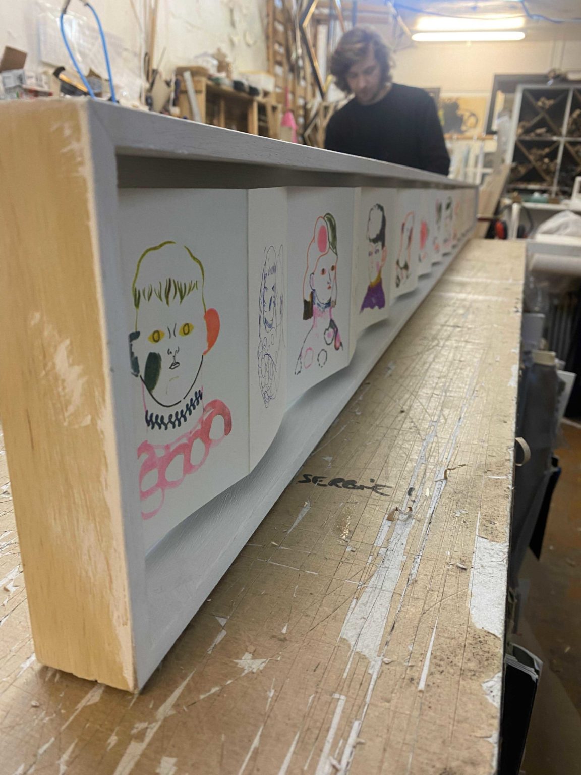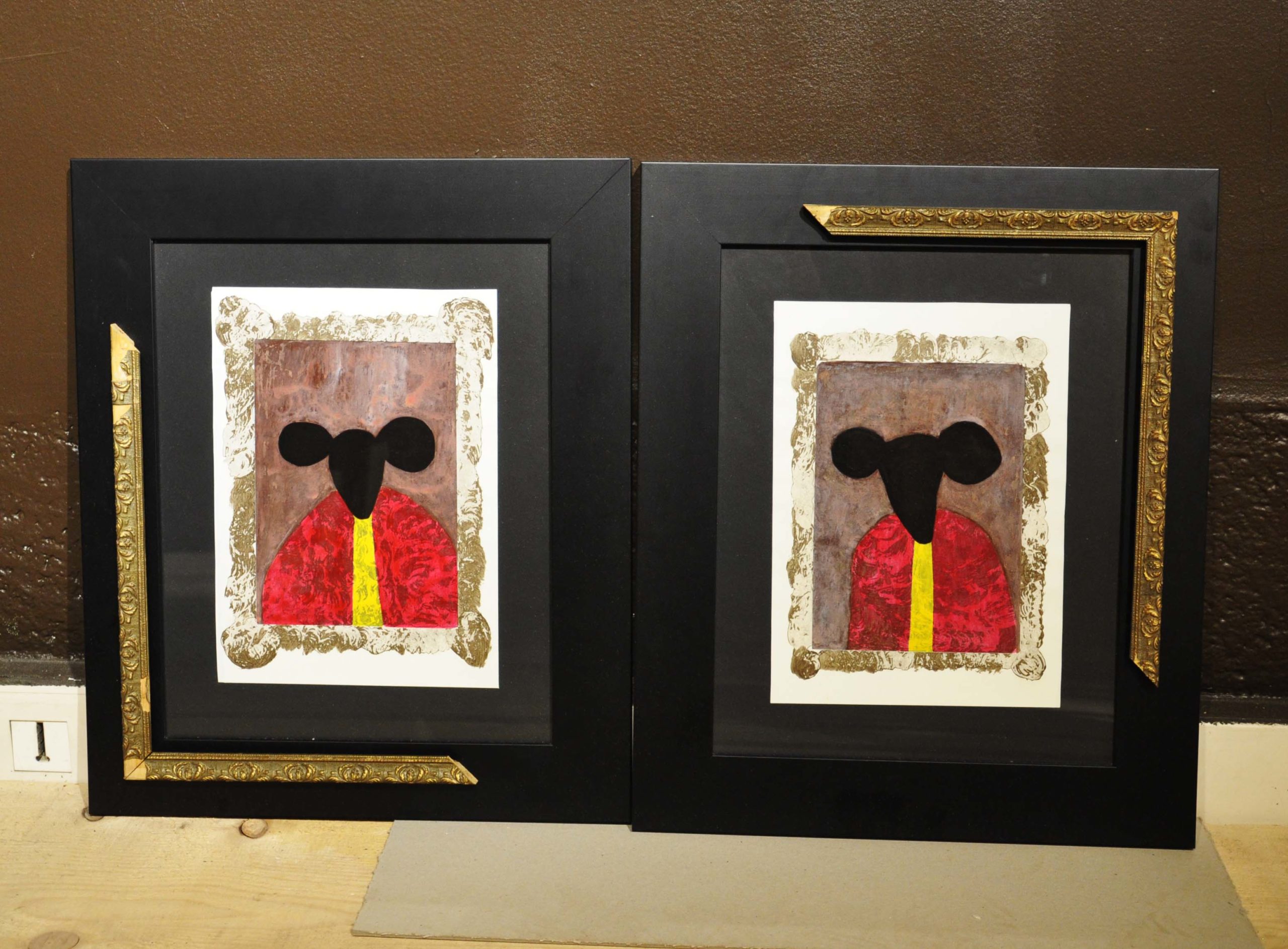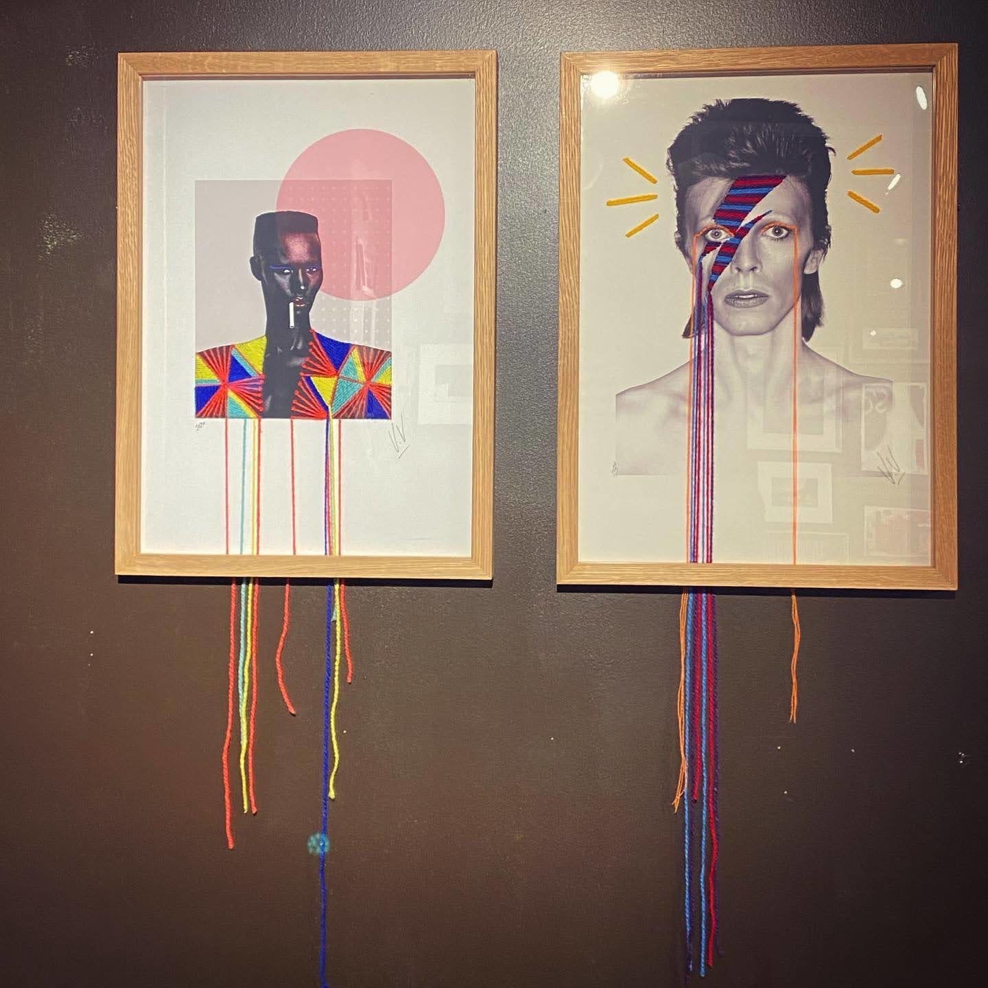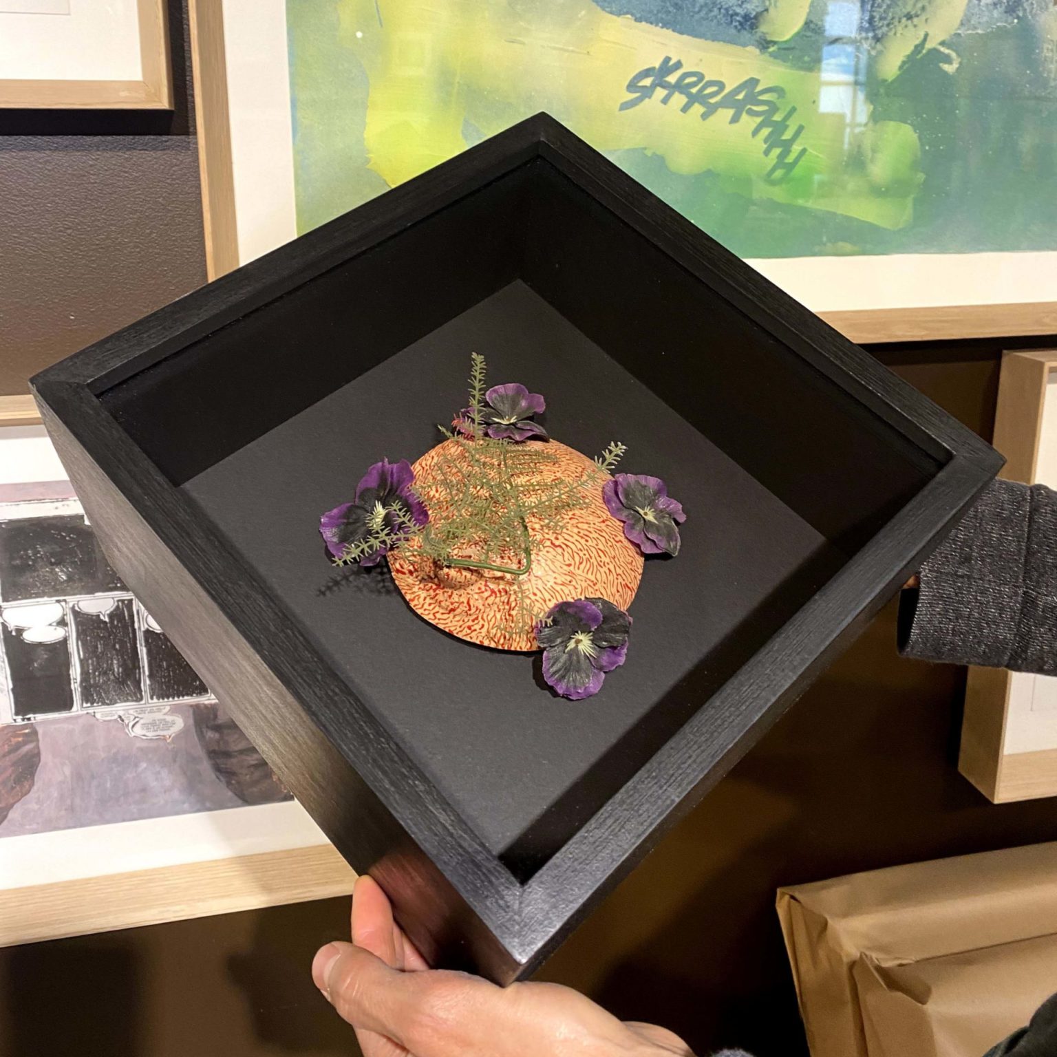 L’œuvre est fixée sur un fond de couleur, puis entourée d’un passe-partout : un double effet qui renforce l’impact visuel.