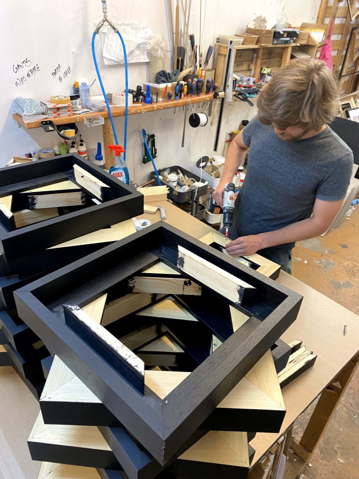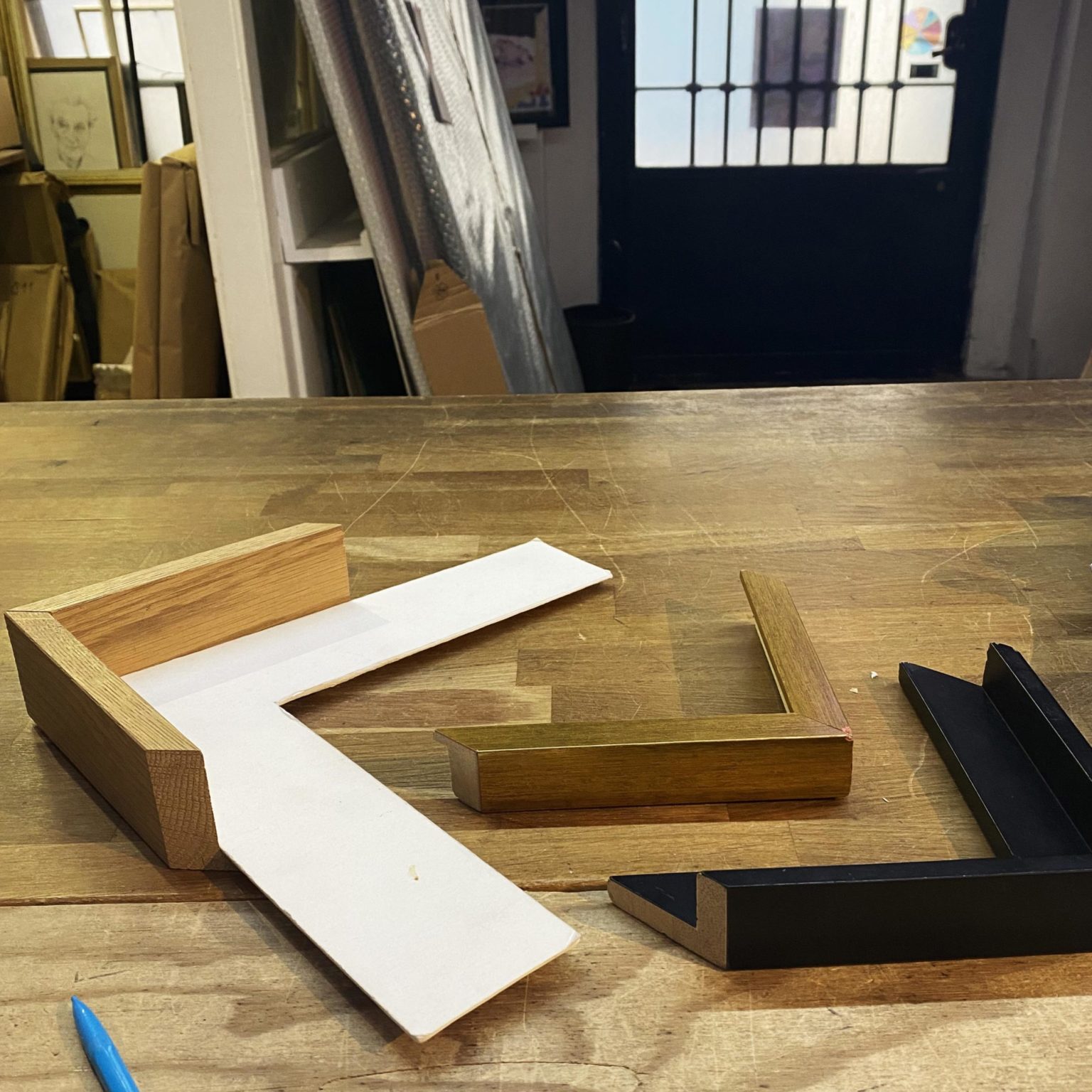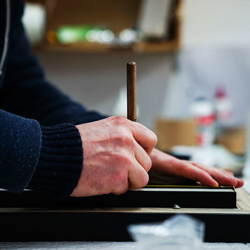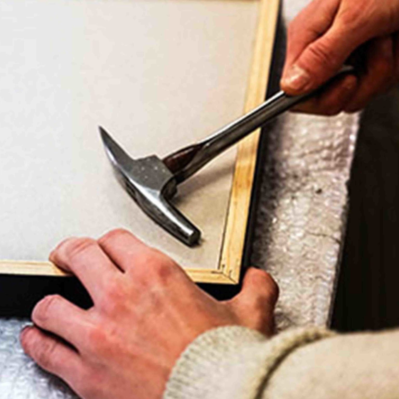 La fabrication : Nous fabriquons votre cadre sur-mesure. Votre œuvre ne quitte pas l’atelier !