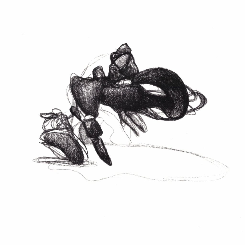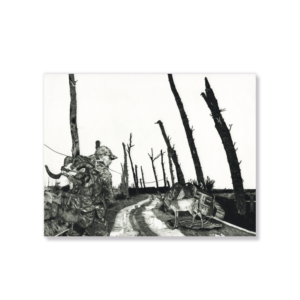Léopold Poyet vit et travaille à Lyon depuis 2019. Après un parcours atypique (des études de médecine, puis de design) il trouve sa voie aux Beaux-Arts de Paris. Sa pratique alterne aujourd’hui entre l’estampe et le dessin. En parallèle de sa production artistique, il a également été encadreur à la galerie Autour de l’Image entre 2022 et 2024. Pour l’exposition des 30 ans, il présente une série de dessins au crayon sur papier aquarelle : “J’avais envie de retravailler sur des chiens, mais avec des images un peu sales, qui mettent en avant le mouvement. Et les aborder avec une technique plus rapide qu’à mon habitude. “