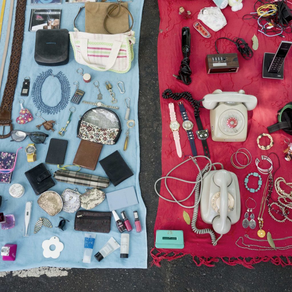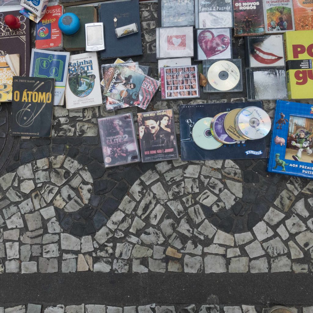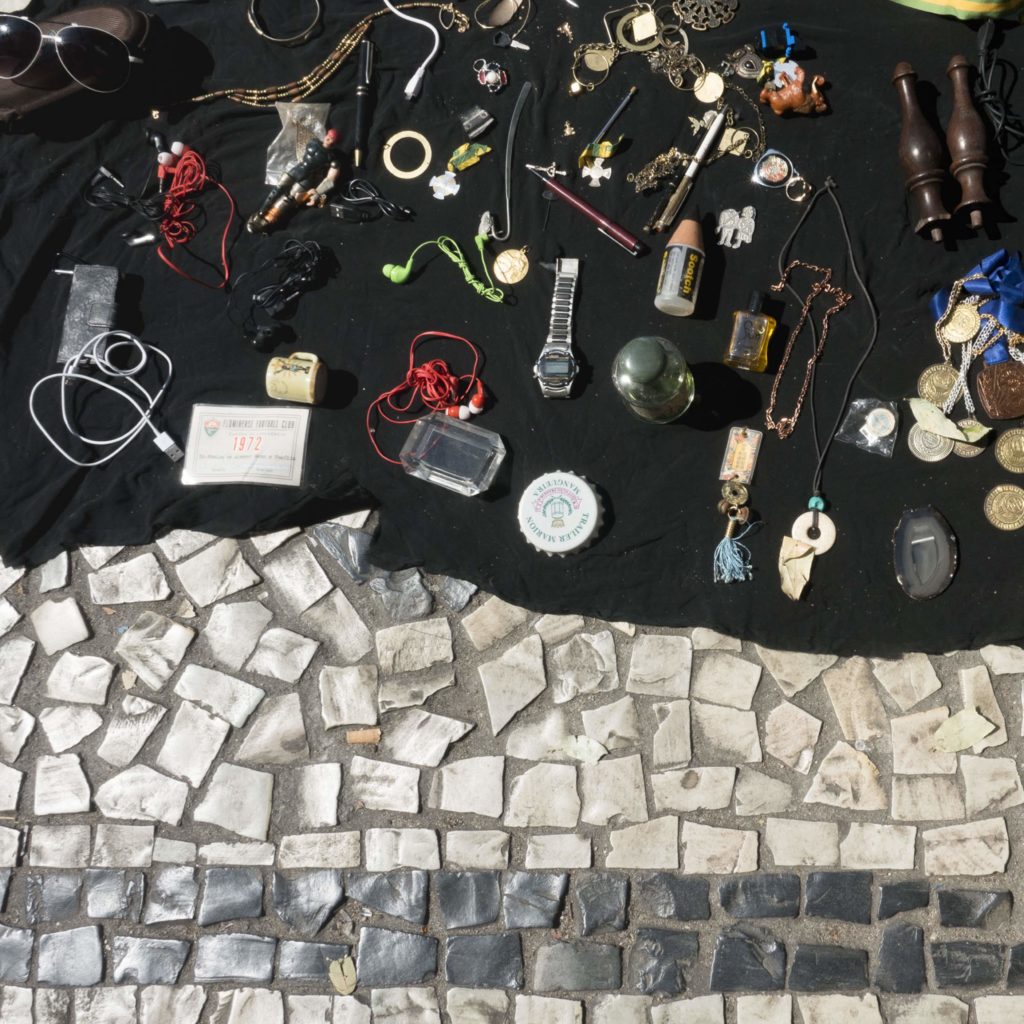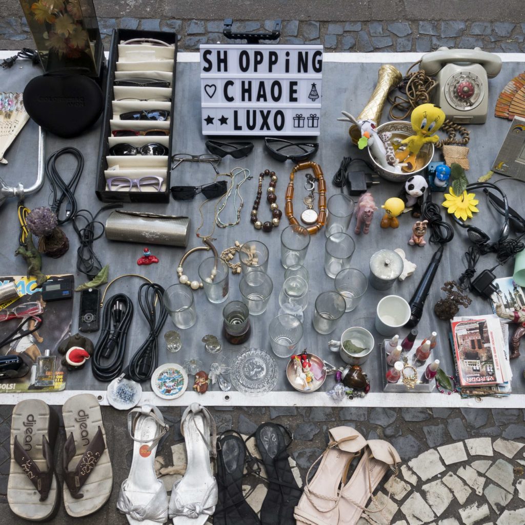 Photographe brésilien, il s’intéresse aux constructions populaires : maisons, commerces, mais aussi ce que l’on construit de plus subtil – nos manières de vivre ensemble. Sa série Shopping Chão documente ces étals informels posés à même le sol, sur l’asphalte ou les trottoirs. Un « assemblage naturel » d’objets et de vies qui interroge la production, la consommation, l’accumulation… et notre regard sur ce qui fait commerce. Avec humour et tendresse, il détourne le terme “shopping” pour le rapprocher du “chão” – le sol – là où s’invente un autre rapport à la ville, aux objets, à l’humain.