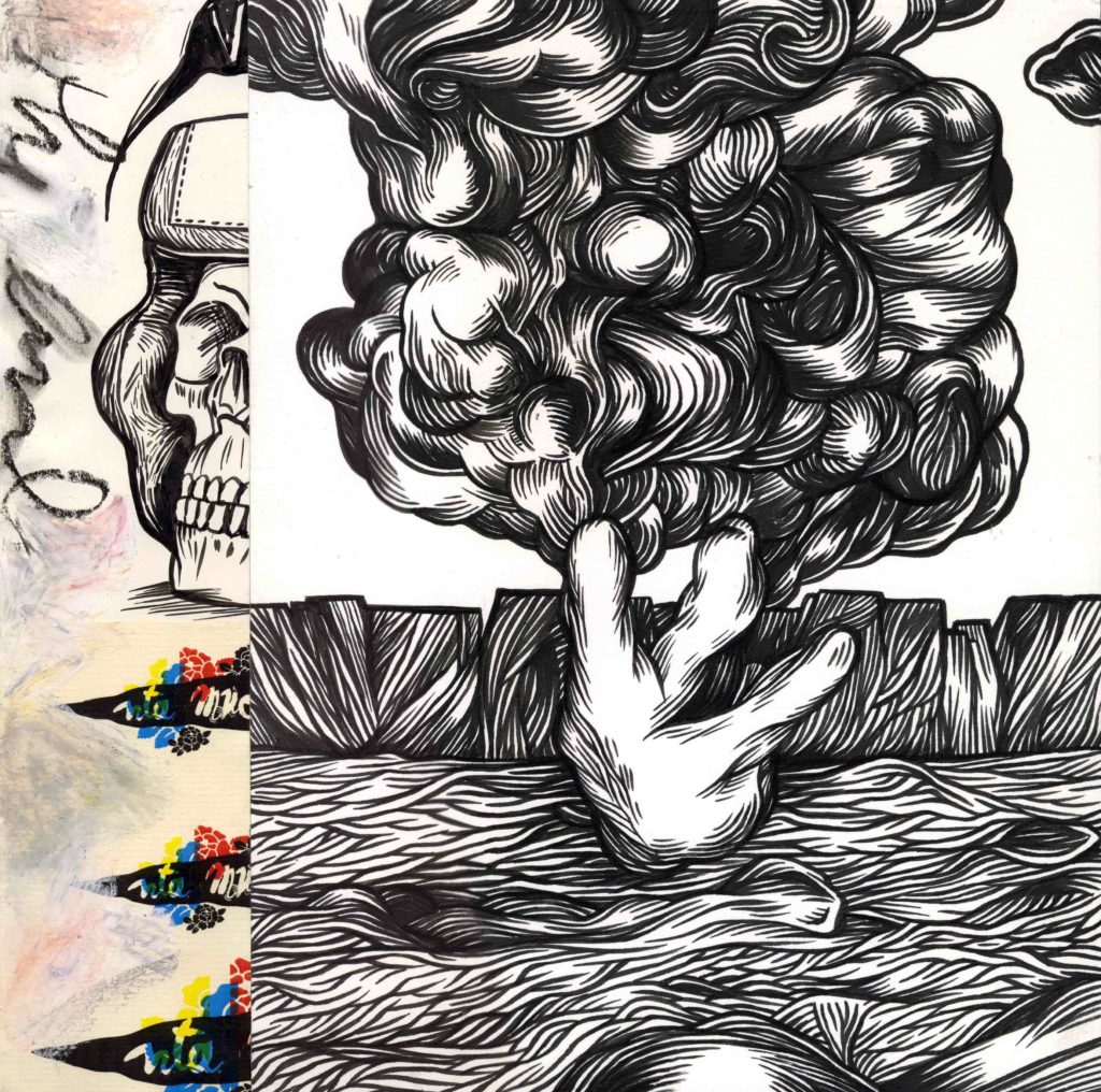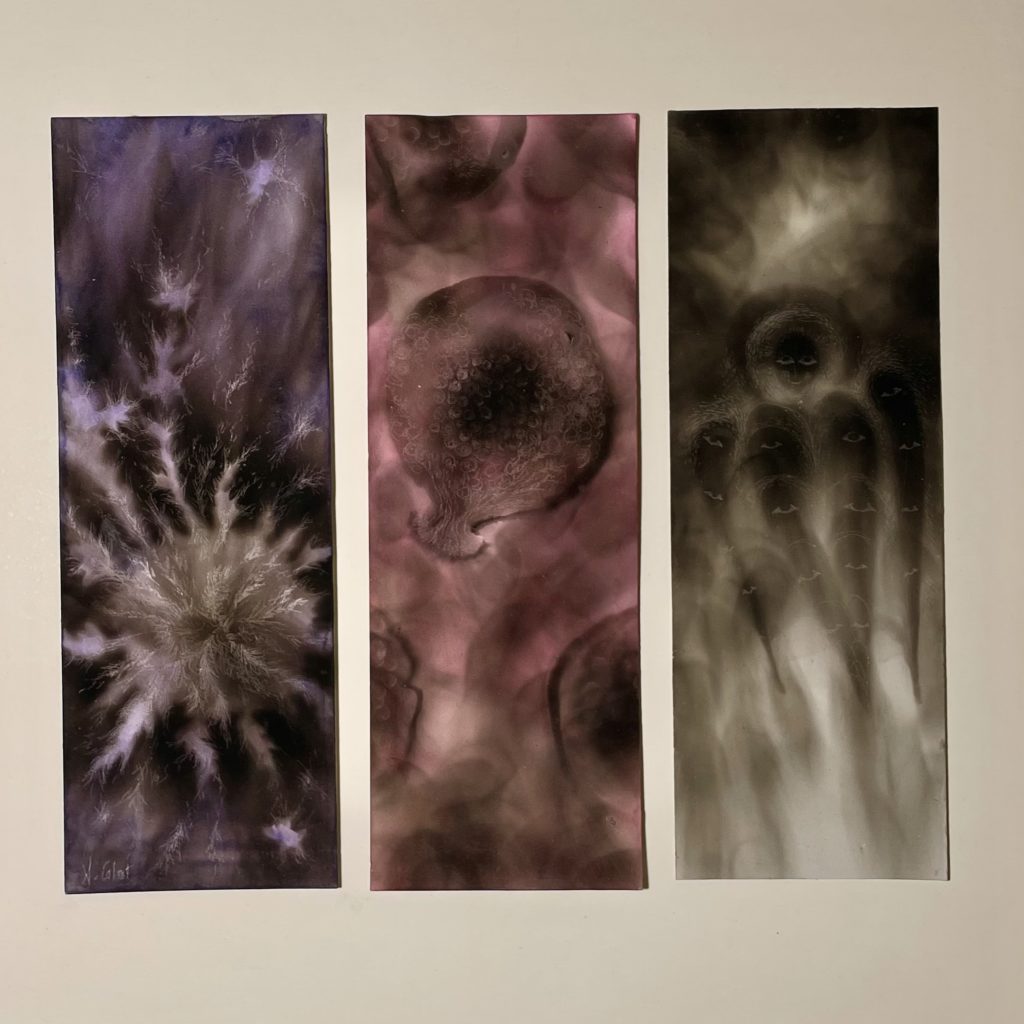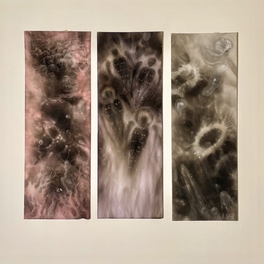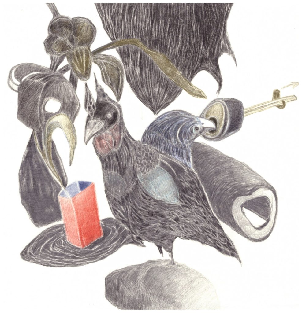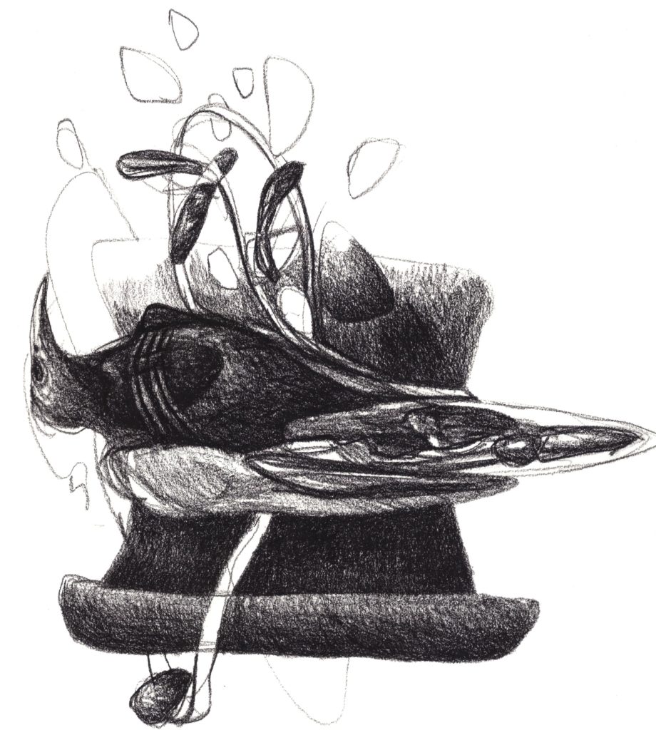 Reza Kabirnia est un artiste plasticien installé à Lyon depuis 2019. Sa pratique explore les perceptions intérieures à travers le dessin et la peinture. Il crée des paysages mentaux, faits de strates et de silences, où mémoire, rêve et sensation se mêlent. “Mes œuvres sont des espaces ouverts, des cartographies intuitives où l’inconscient trace ses propres chemins.”Pour cette exposition, il présente une série inspirée par la symbolique du corbeau : “ Cette série est née de ma fascination pour la nature et la symbolique des oiseaux, en particulier le corbeau. Considéré comme intelligent mais souvent associé à des valeurs négatives, il m’a mené à la mythologie grecque où, selon le mythe, Apollon le transforme de blanc à noir par colère. ” Ces dessins prolongent cette exploration graphique du mythe et du symbolisme.
