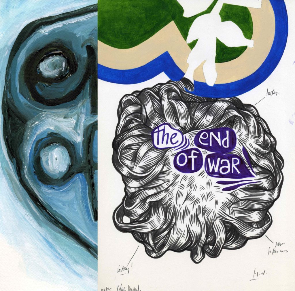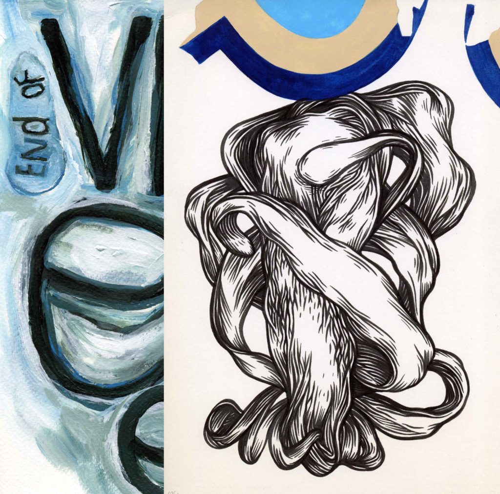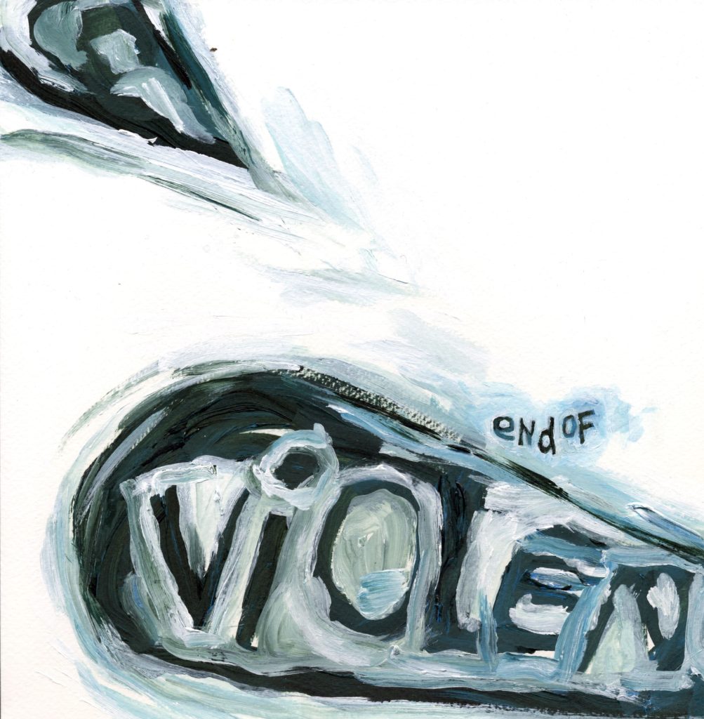 Peintre, vidéaste et graphiste né en 1967, Olivier Devignaud vit et travaille à Saint-Étienne. Son style graphique, volontiers provocateur, puise son inspiration dans le langage publicitaire, l’art graphique et la figuration libre. Il propose une image critique de notre société de consommation. Les mots et la typographie prennent une dimension existentielle dans son travail de “recyclage”, où ailes d’anges, Vanités, objets usuels, références théologiques et martiales apparaissent comme des symboles récurrents, sous forme de “ samplings “ graphiques. Pour l’exposition des 30 ans de Autour de l’image l’artiste “représente un répit dans l’actualité violente du monde d’aujourd’hui, une parenthèse offerte par l’Art, la création, l’humour, la fantaisie. Je me suis amusé à créer des petits formats sur mesure, avec les techniques que j’affectionne, qui font référence indirectement à cette atmosphère apocalyptique avec humour et second degré, nous permetttant de mesurer que l’art et la Galerie qui le représente ainsi, figurent un véritable havre de paix et de bonne humeur…”