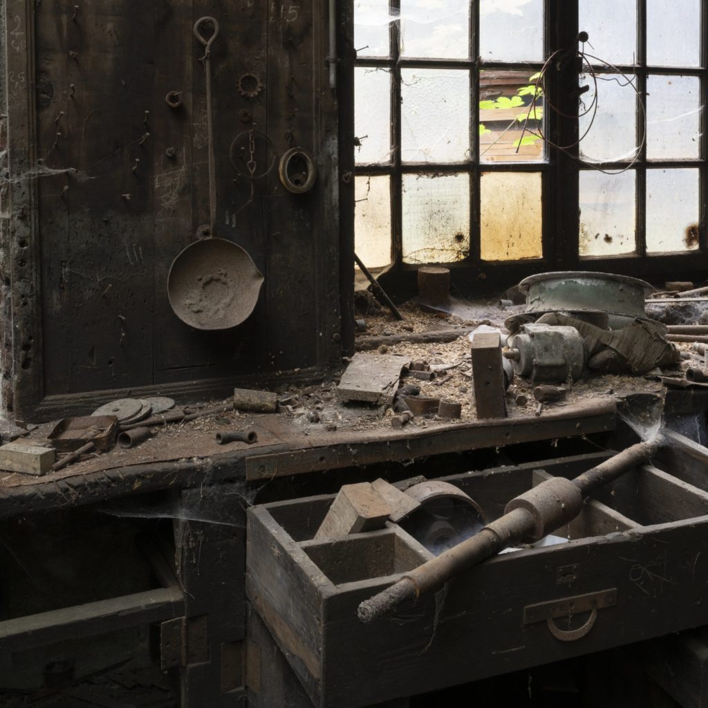 Photographe héritière d’une tradition familiale de l’image argentique, elle place la photographie comme un outil de distance… et de vérité. Sa série, réalisée dans une ancienne usine, révèle des ruines industrielles chargées de souvenirs : murs écaillés, machines rouillées, vestiges immobiles. Des “archives muettes” qui portent en elles la trace d’un monde révolu. Mais derrière la poésie de la matière, elle évoque aussi les cicatrices : conditions de travail, pollution, matériaux toxiques… Autant d’empreintes visibles d’un passé dont il faut encore tirer les leçons.