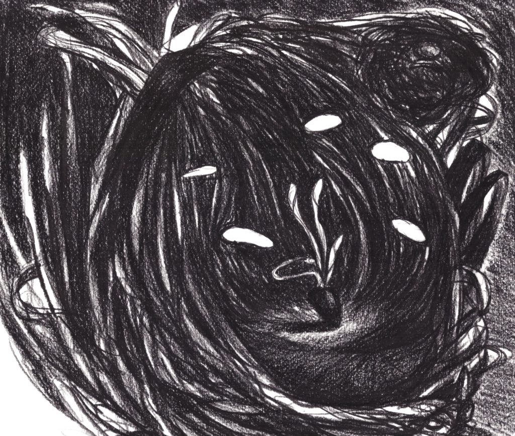 Blanche Berthelier expose depuis 2010, après un passage aux Beaux-Arts de Lyon. Son univers explore les oppositions du noir et du blanc, de l’ombre et de la lumière, sur de grands formats au fusain et de petits dessins minutieux à l’encre. Ses images, silencieuses et autonomes, surgissent d’un processus sensible. C’est une tentative de rendre visible ce que le verbe échoue à exprimer, une mise en forme de contenus inconnus que le dessin a la capacité de composer pour en livrer un sens possible.