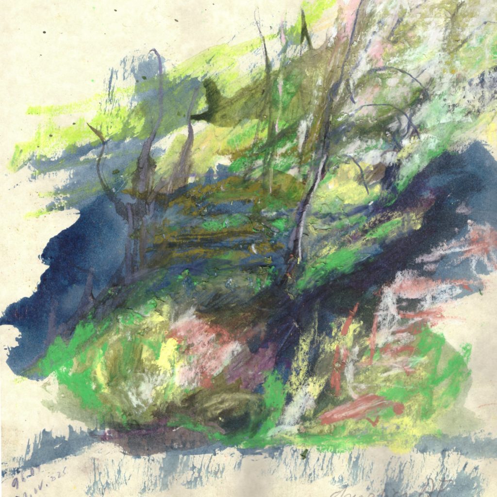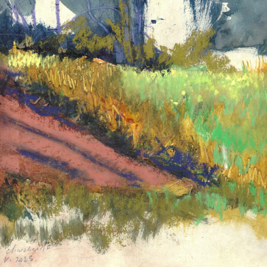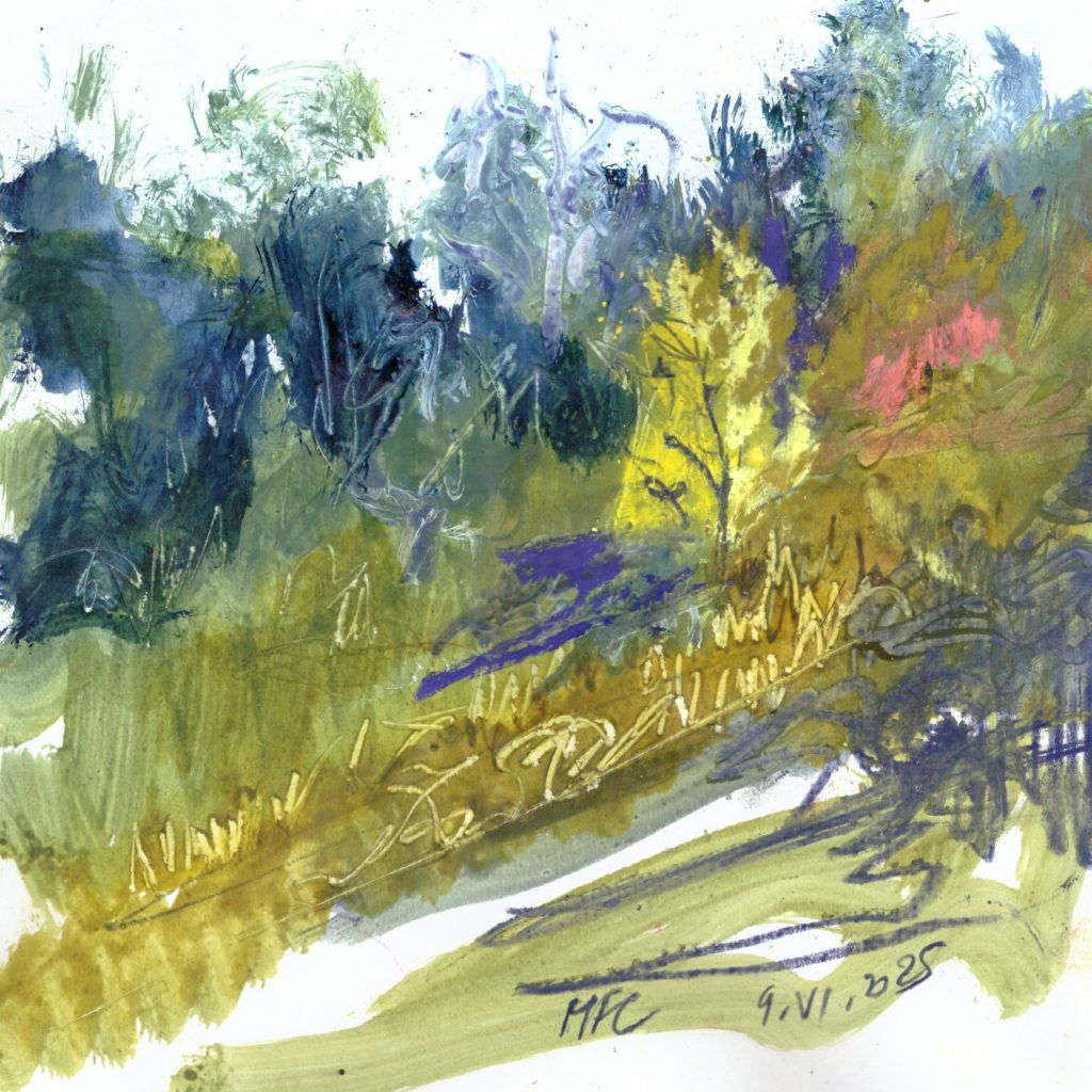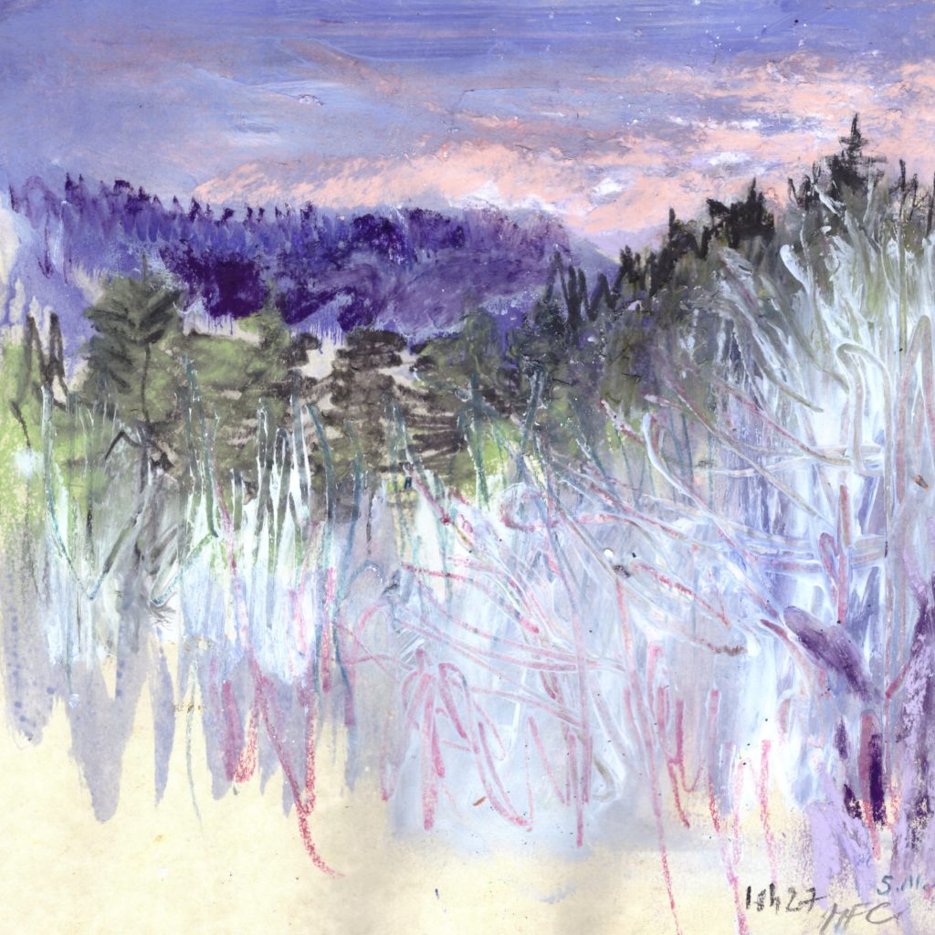 Marie-France Chevalier est une artiste peintre, qui partage sa vie entre Lyon et le plateau du Vercors.Diplômée des Beaux-Arts de Lyon, elle explore la mémoire, le paysage et la transformation des lieux à travers des médiums variés. Elle s’intéresse également, à la nature, aux corps, en particulier féminins, qu’elle représente dans leur évolution et leur métamorphose. Marie-France Chevalier crée chaque jour une image inspirée de son paysage quotidien. Sa peinture suit le rythme des saisons, des lumières, des gestes. Un rituel d’atelier devenu offrande visuelle. Dans la répétition se cache une poésie du présent, un lien humble entre le regard et le monde. Pour les 30 ans de la galerie, elle relève le défi du petit format, en en faisant un haïku visuel, une lettre poétique.