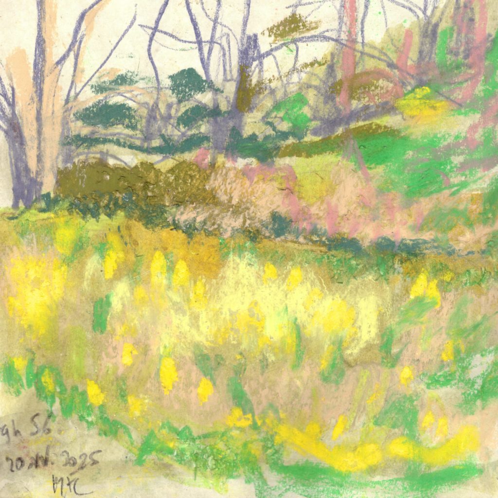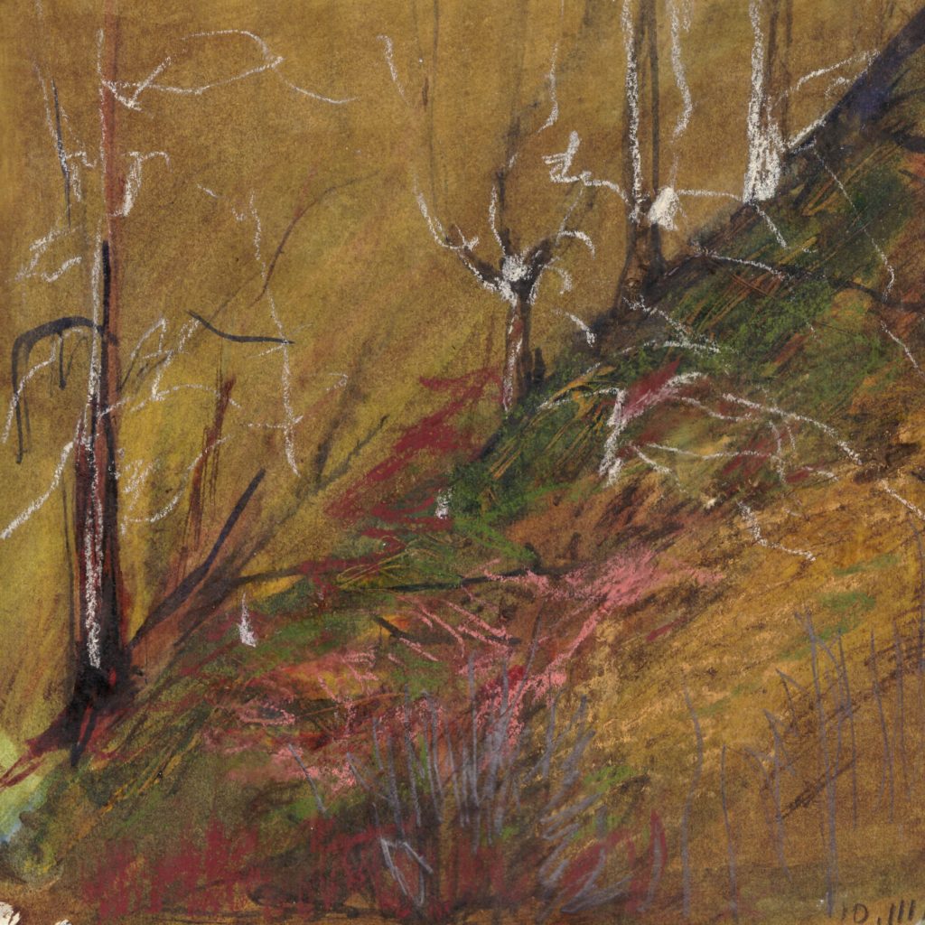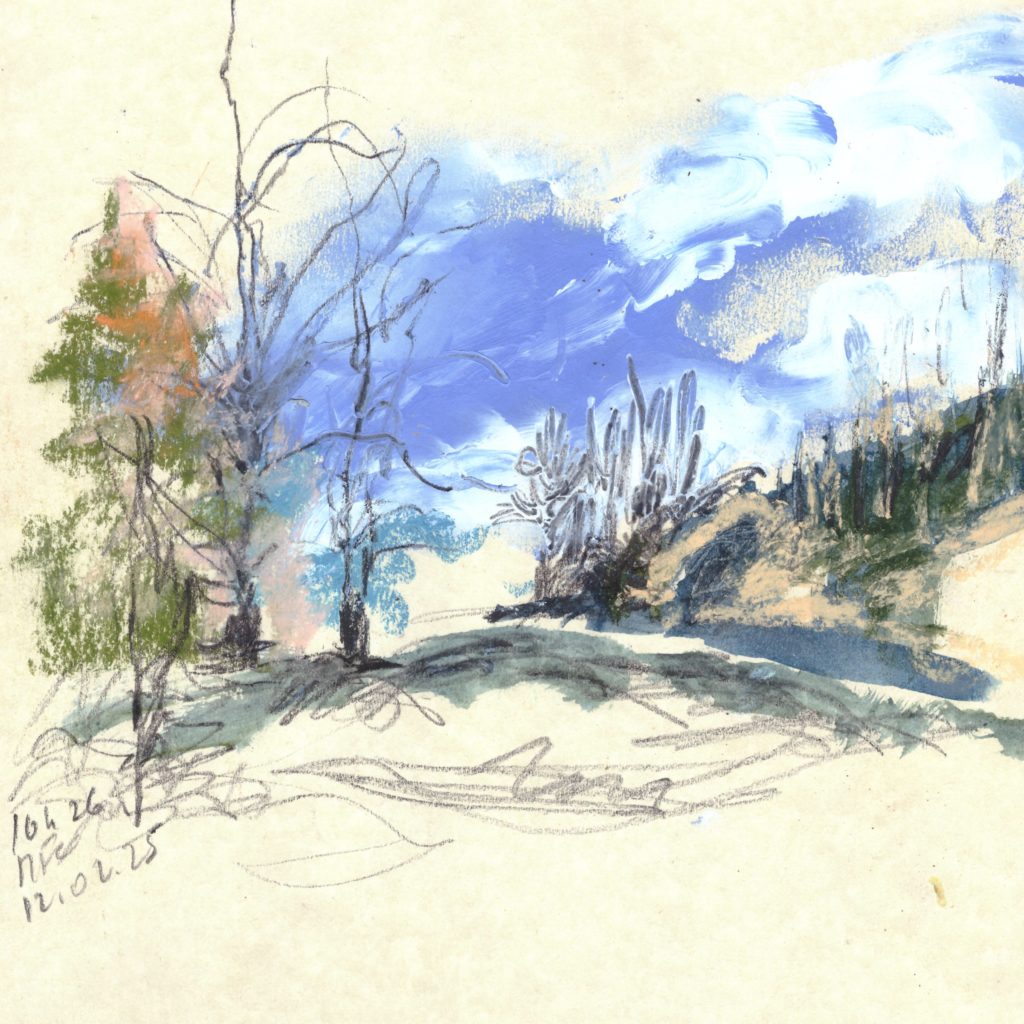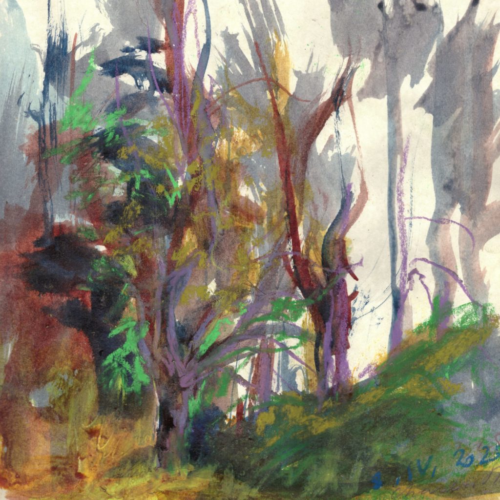 Marie-France Chevalier est une artiste peintre, qui partage sa vie entre Lyon et le plateau du Vercors.Diplômée des Beaux-Arts de Lyon, elle explore la mémoire, le paysage et la transformation des lieux à travers des médiums variés. Elle s’intéresse également, à la nature, aux corps, en particulier féminins, qu’elle représente dans leur évolution et leur métamorphose. Marie-France Chevalier crée chaque jour une image inspirée de son paysage quotidien. Sa peinture suit le rythme des saisons, des lumières, des gestes. Un rituel d’atelier devenu offrande visuelle. Dans la répétition se cache une poésie du présent, un lien humble entre le regard et le monde. Pour les 30 ans de la galerie, elle relève le défi du petit format, en en faisant un haïku visuel, une lettre poétique.