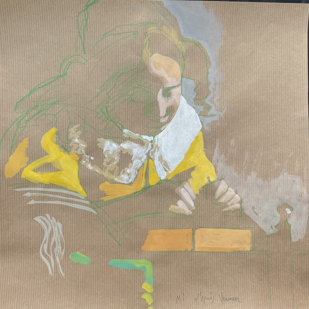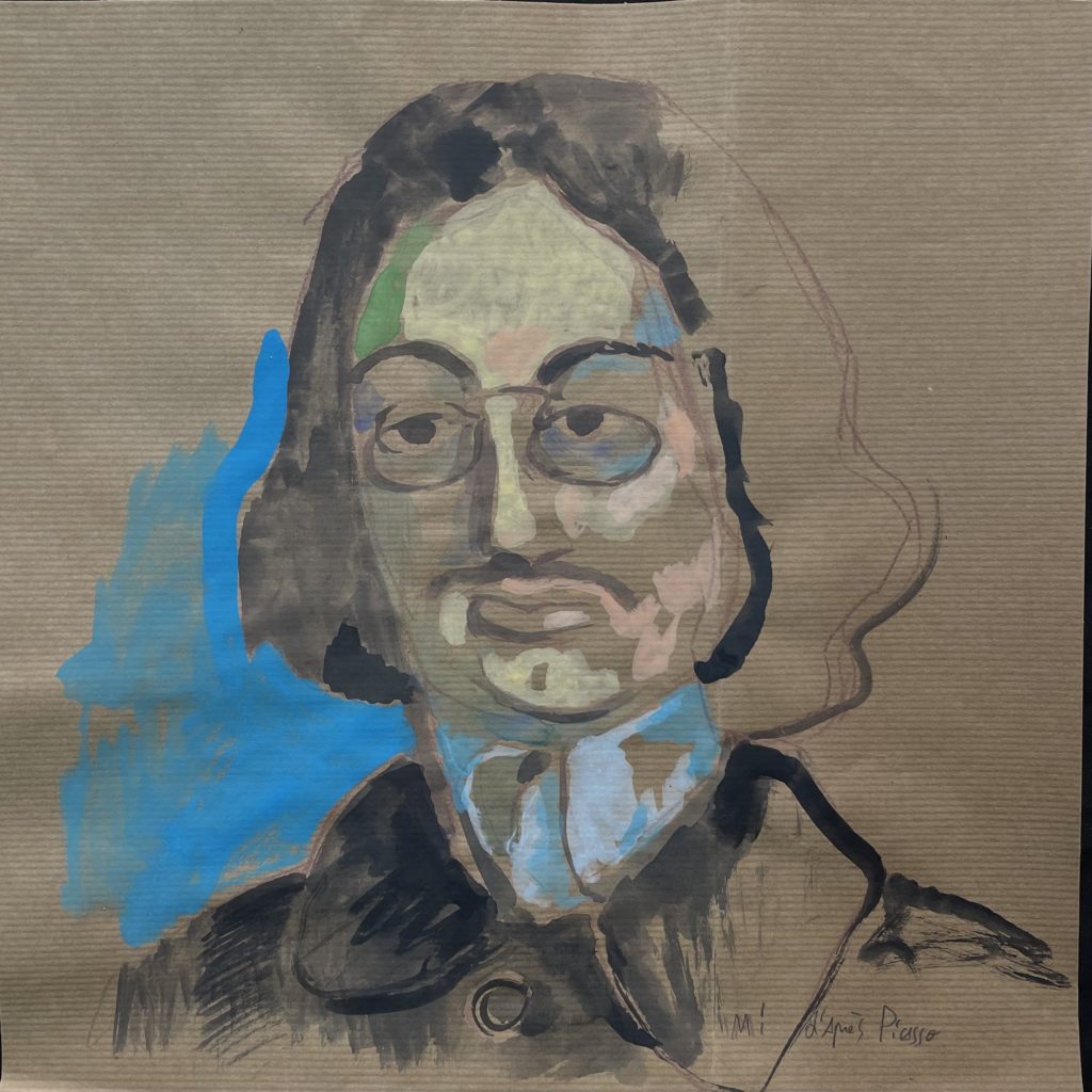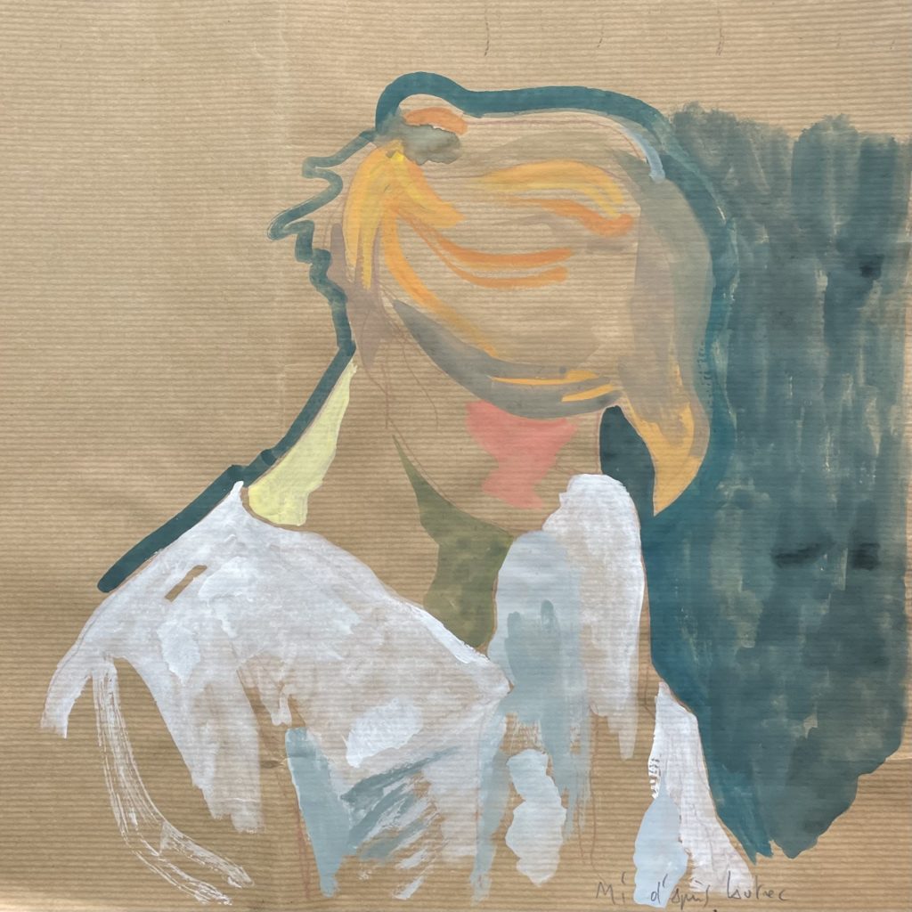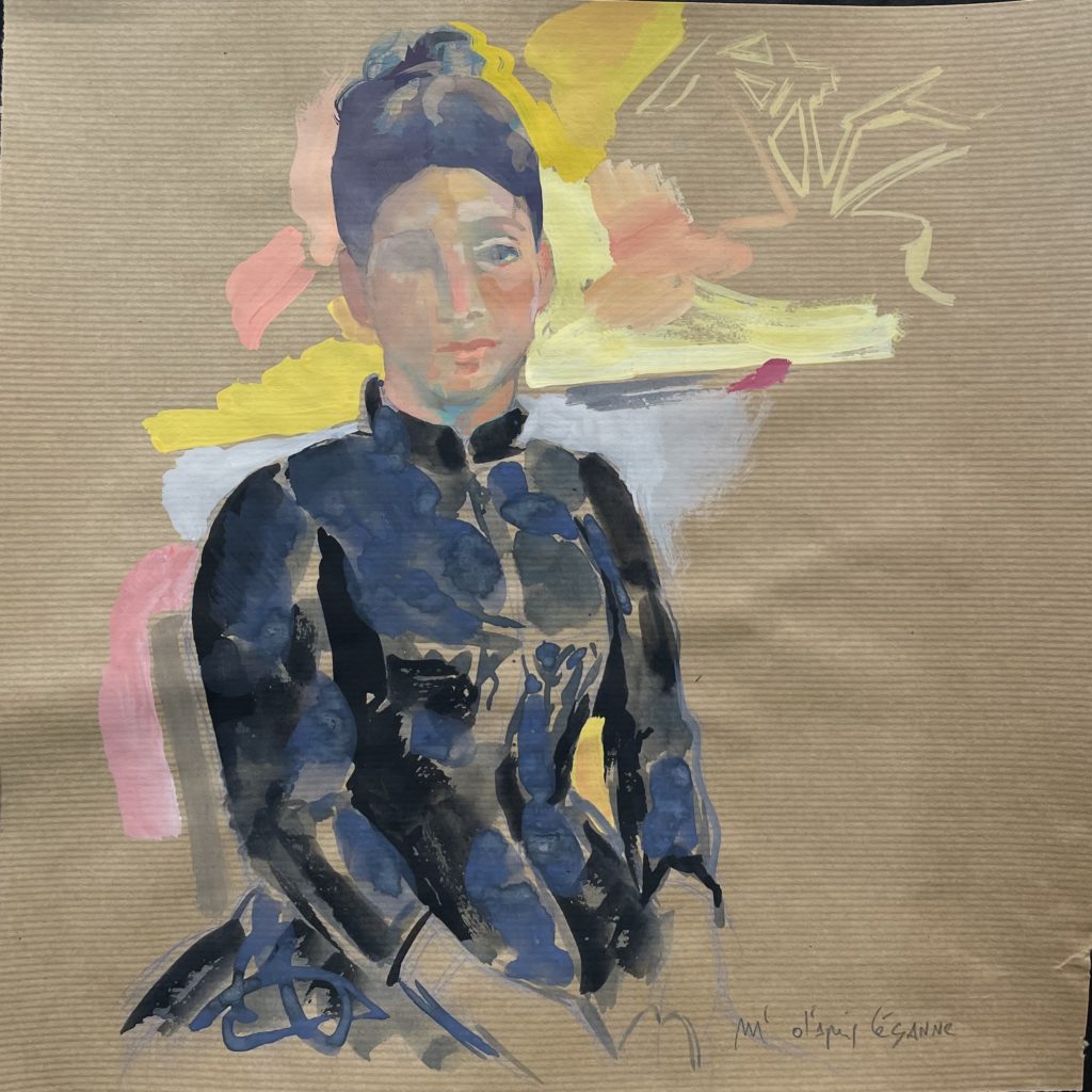 Formé par le dessin de modèle vivant et les heures passées au musée, il revendique une approche libre : “J’aime explorer différentes directions.” Pour les 30 ans d’Autour de l’Image, il revient à la gouache de son enfance, appliquée sur kraft, pour revisiter avec fraîcheur et humilité de grands portraits de l’histoire de l’art. Un hommage léger et respectueux à ceux qui l’inspirent, en mettant littéralement ses pas dans les leurs.