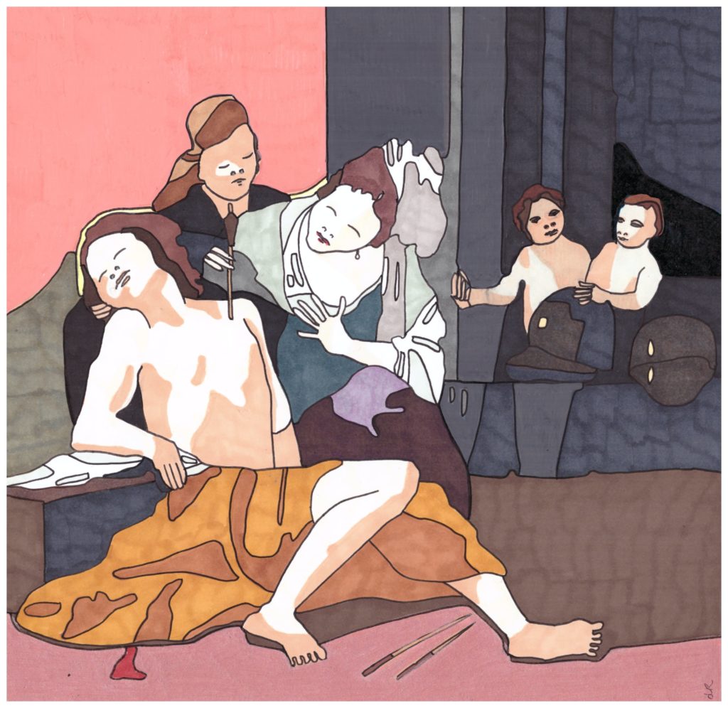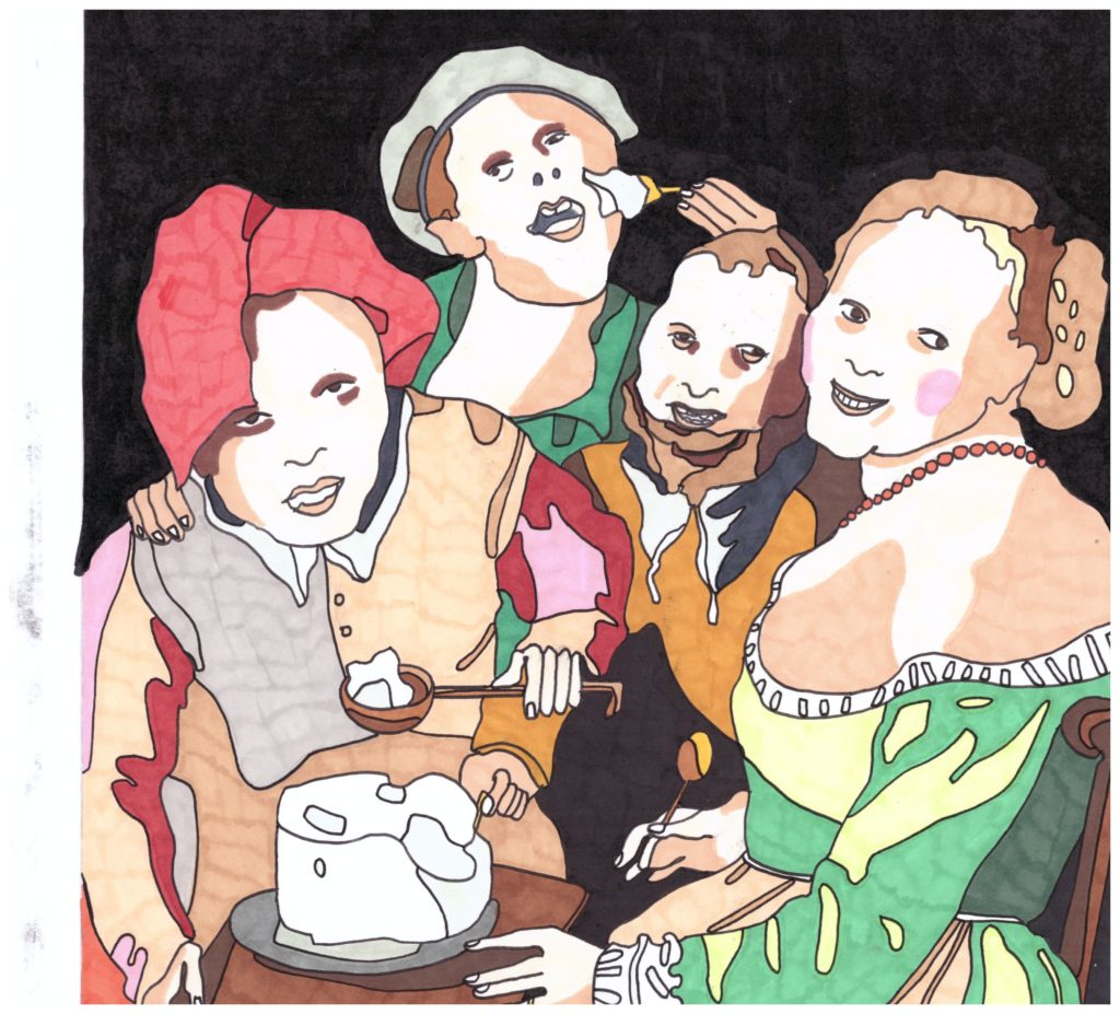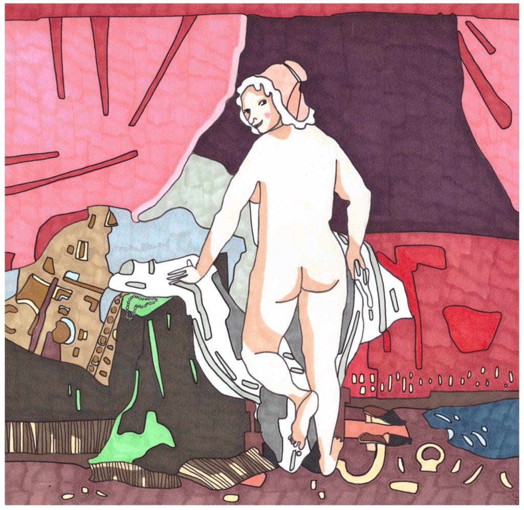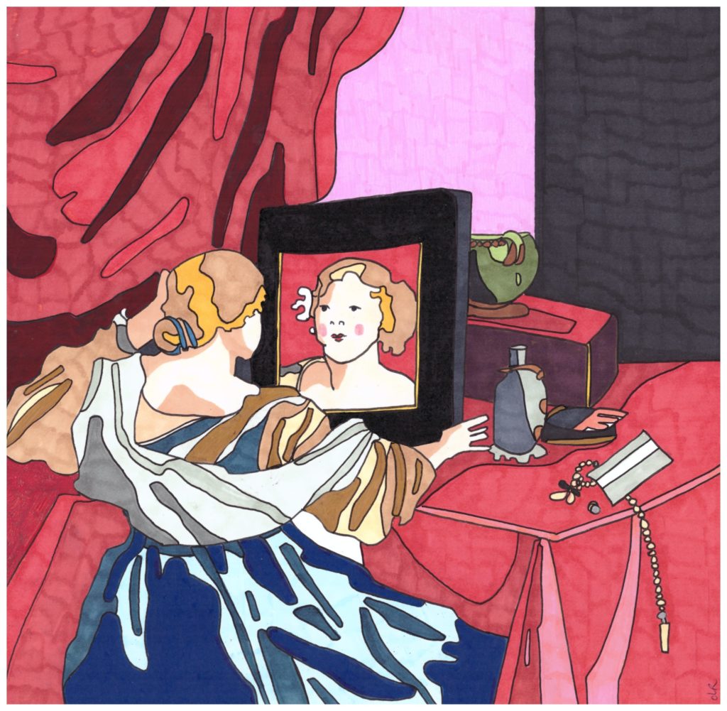 Formé par le dessin de modèle vivant et les heures passées au musée, il revendique une approche libre : “J’aime explorer différentes directions.” Pour les 30 ans d’Autour de l’Image, il revient à la gouache de son enfance, appliquée sur kraft, pour revisiter avec fraîcheur et humilité de grands portraits de l’histoire de l’art. Un hommage léger et respectueux à ceux qui l’inspirent, en mettant littéralement ses pas dans les leurs.