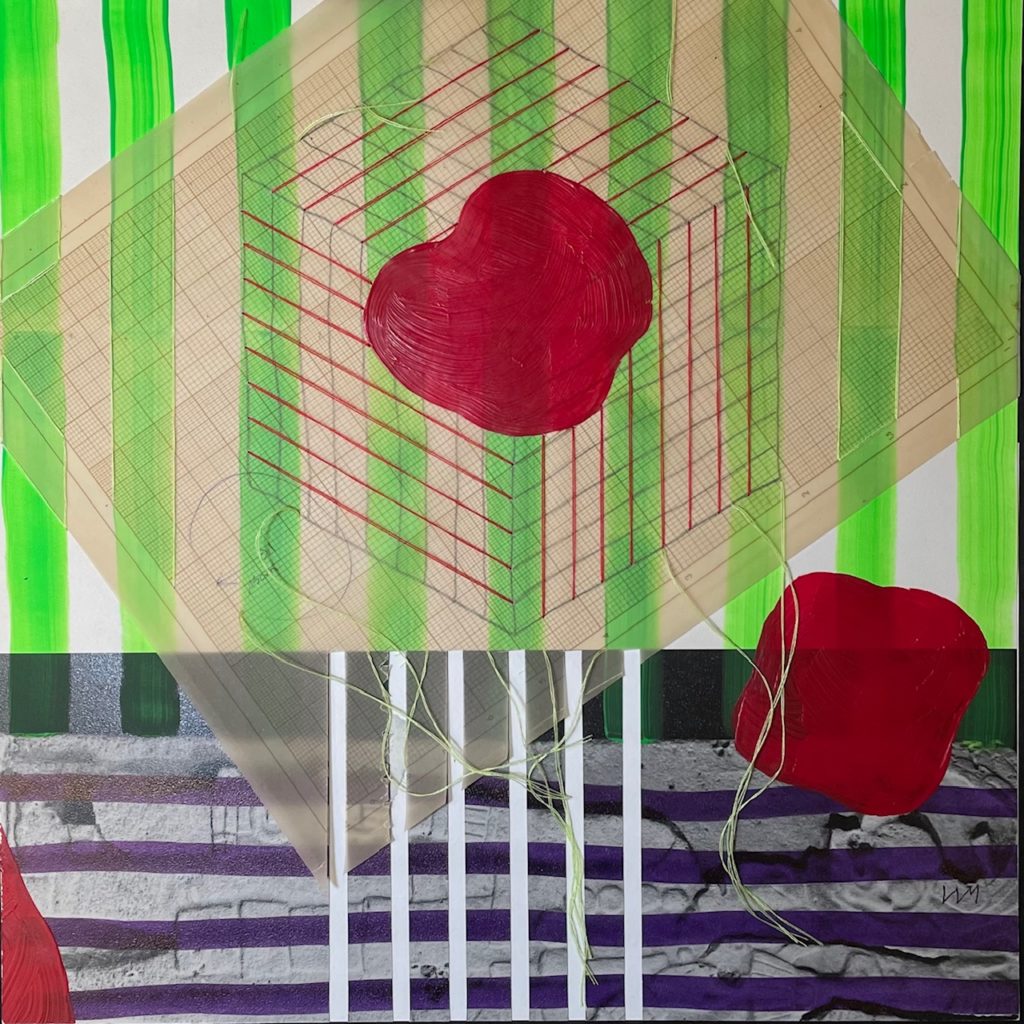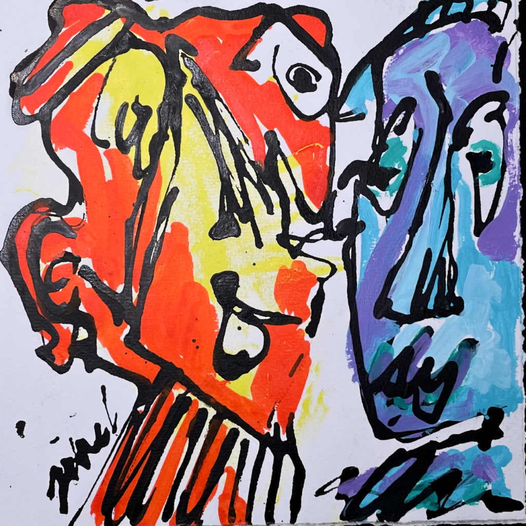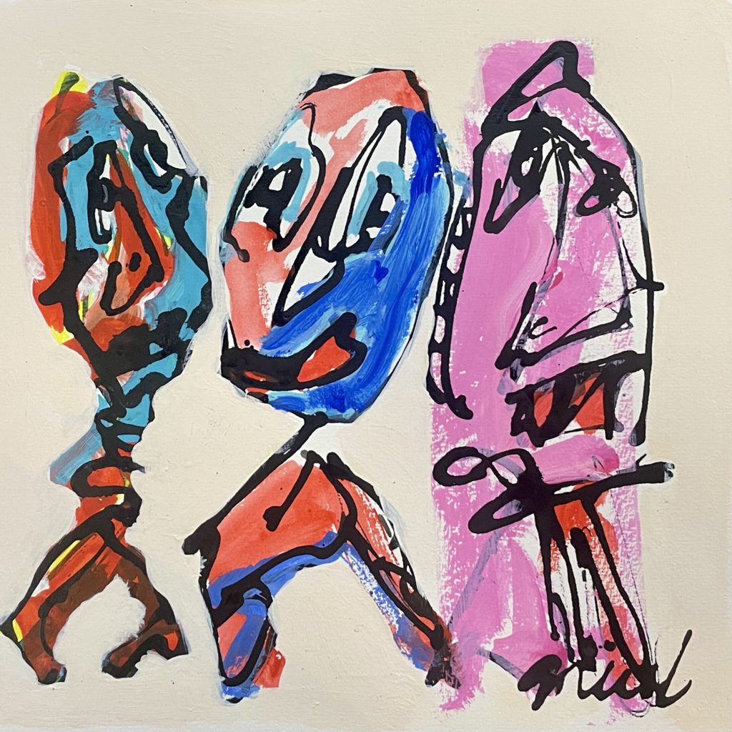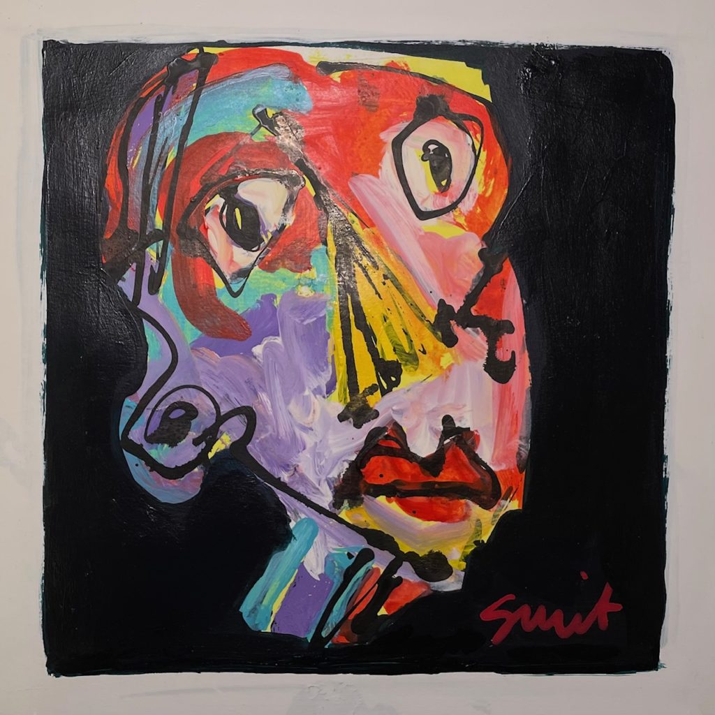 Ancienne cadre reconvertie en artiste à plein temps, elle peint depuis dix ans avec un élan vital, presque sauvage. Ce qui la traverse ? Le rugueux, le banal, l’excentrique… tout ce que le monde lui envoie.Sa palette est restreinte, mais intense — le rouge y est roi, battement de cœur viscéral dans chaque toile.Pour les 30 ans d’Autour de l’Image, elle mise sur le petit format et la couleur vive. “C’est la fête non ?” Un feu d’artifice de pigments et d’instinct.