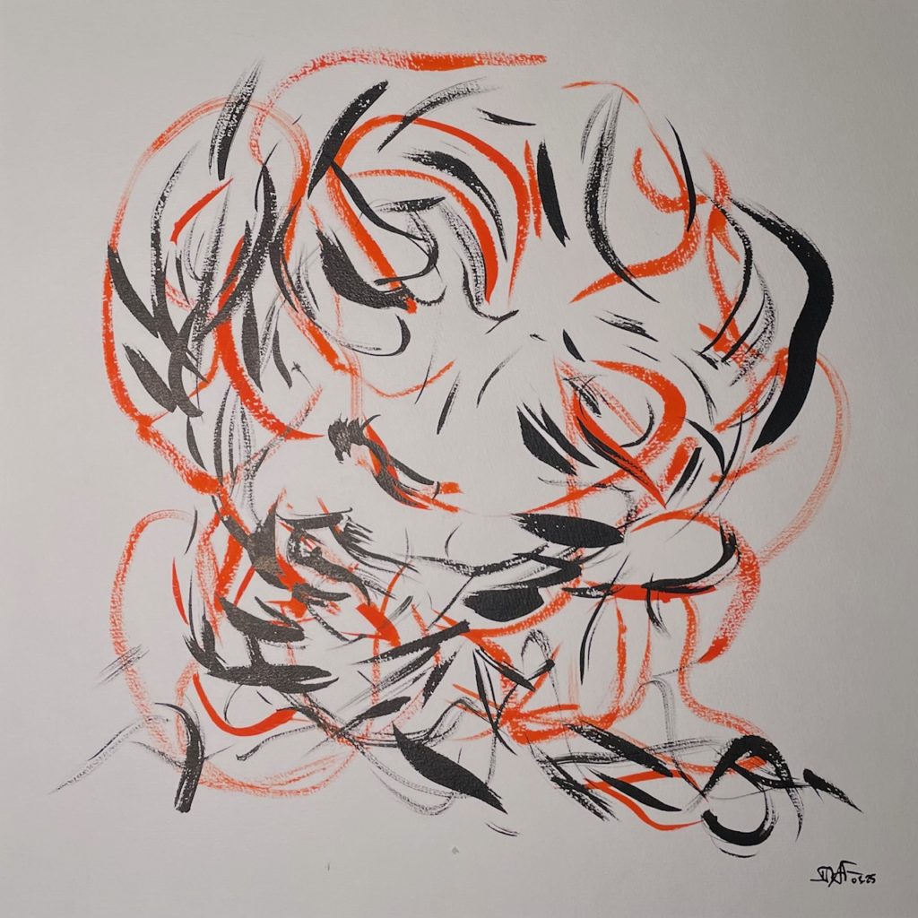 Né en 1980 d’une mère française et d’un père libanais, Fadi Singer est un artiste autodidacte dont la pratique repose sur le dessin automatique, qu’il décrit comme une “photographie d’un ressenti à l’instant T”. Son travail mêle lâcher-prise, énergie intuitive et émergence de formes dans un geste presque sculptural. “J’intègre une part d’aléatoire dans ma pratique puisque je démarre mes oeuvres sans idée précise, je lance des traits au hasard selon un état, une émotion, et je vois ce qui sort. J’aime également utiliser l’image de sculpture sur papier. A force d’ébrécher le blanc avec du noir, de faire jaillir la lumière du noir avec du blanc ou de la couleur, les traits s’agglomèrent, des formes se composent, le sujet émerge”. Depuis un voyage marquant à Beyrouth en 2019, il développe une œuvre répétitive et organique, fondée sur l’expression de l’inconscient. Ses créations se déploient entre Paris, Lyon, Saint-Étienne et Beyrouth.