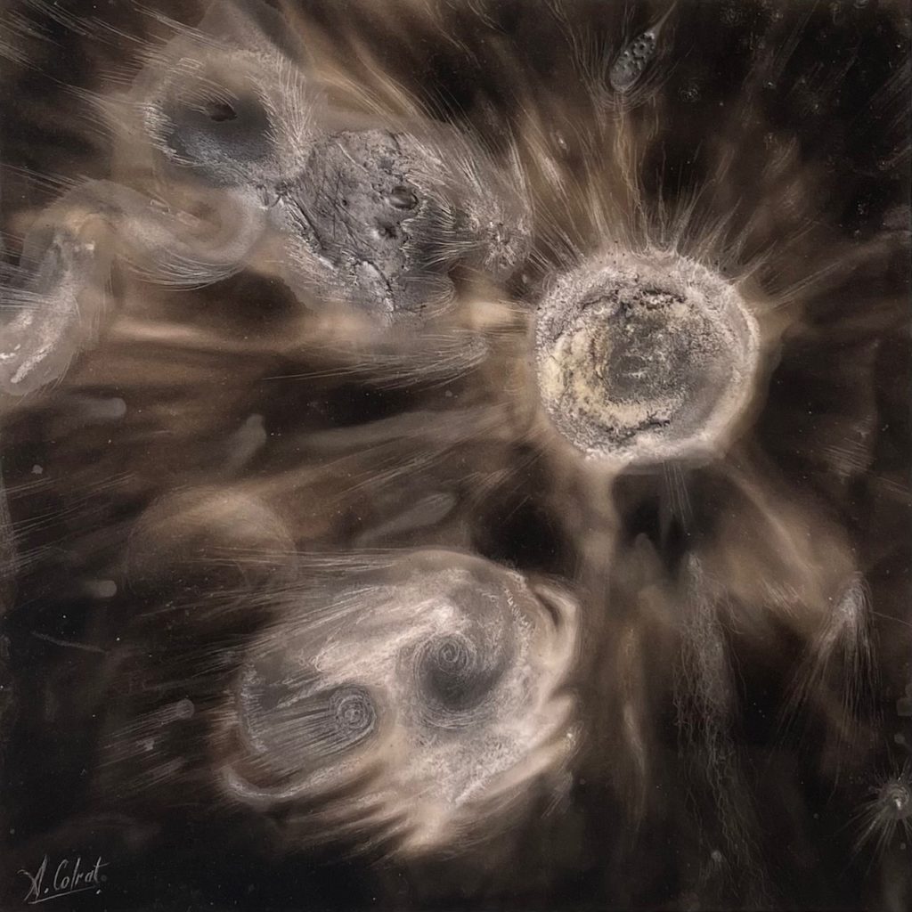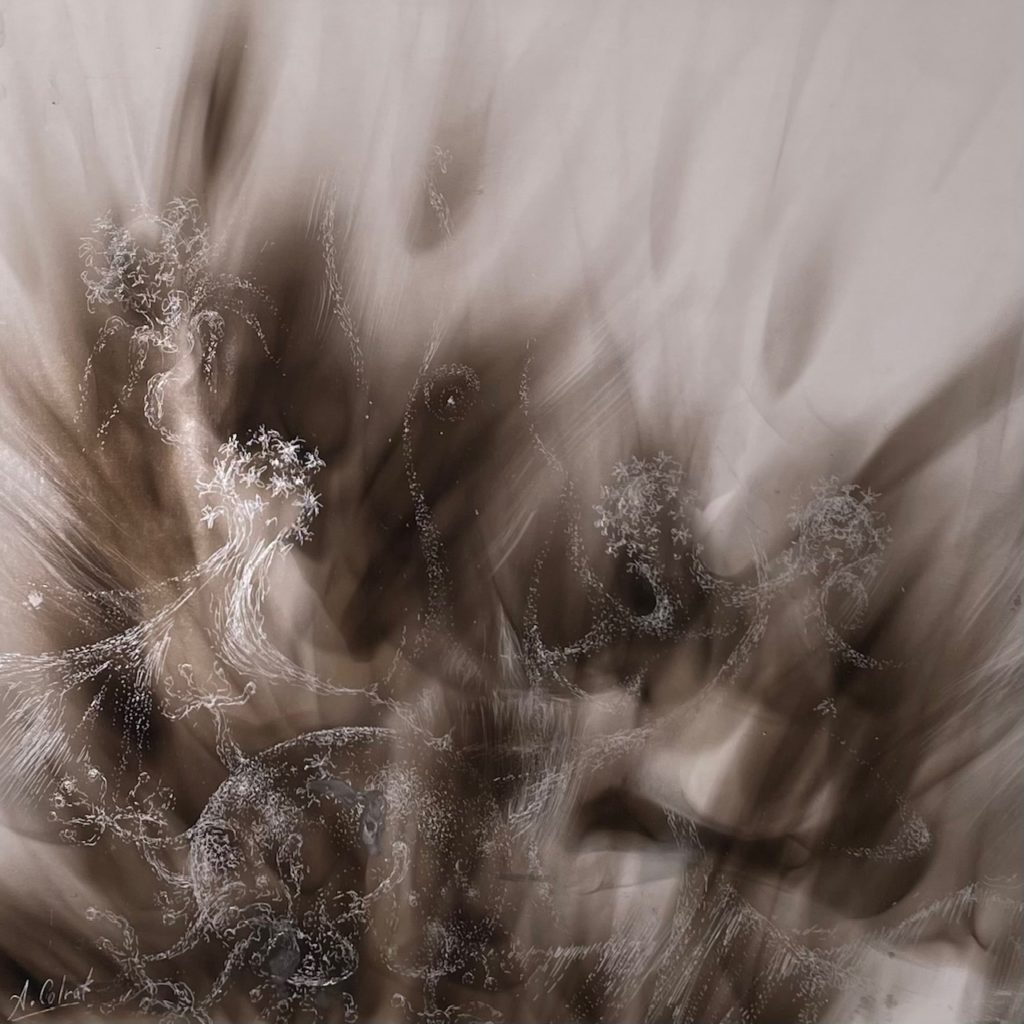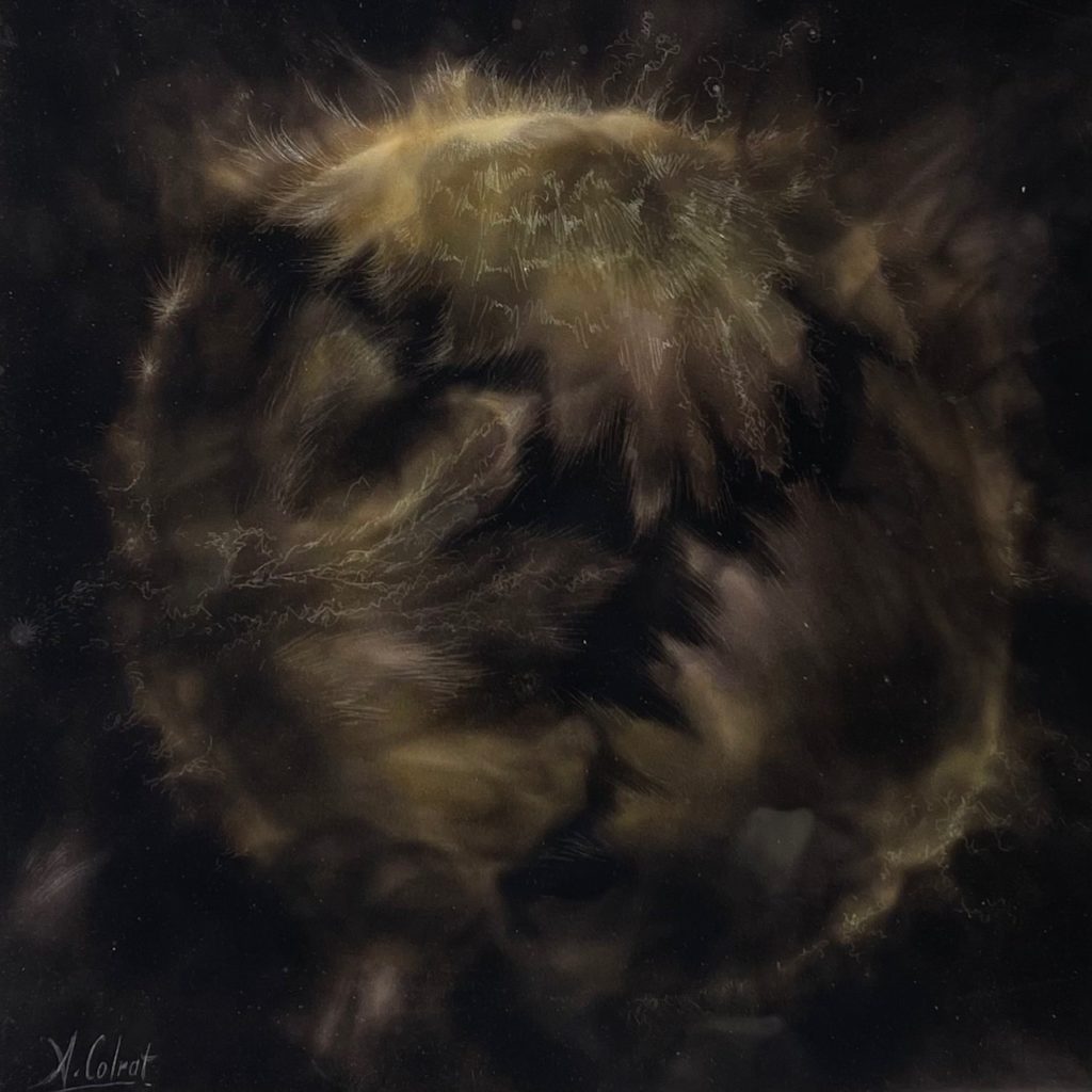 Photographe engagée, Philippine De Joussineau interroge notre rapport au monde en brouillant les frontières entre visible et invisible. Son travail s’ancre dans une recherche plastique nourrie par la spiritualité, les sciences et la philosophie du vivant. Elle privilégie les procédés argentiques et les tirages alternatifs, qu’elle détourne pour créer des œuvres aux matières sensibles et vibrantes. Ses portraits, cuits au feu ou au sel, se transforment jusqu’à devenir vibration pure. Elle s’intéresse à la mémoire du corps, à la trace laissée par l’absence, au silence comme présence. Dans sa série autour de l’élément feu, elle interroge la transformation, l’absence, le corps comme empreinte. Un travail profond, sensoriel, entre photographie argentique et alchimie.