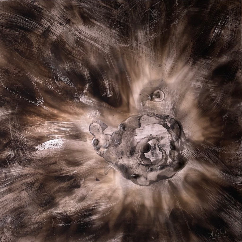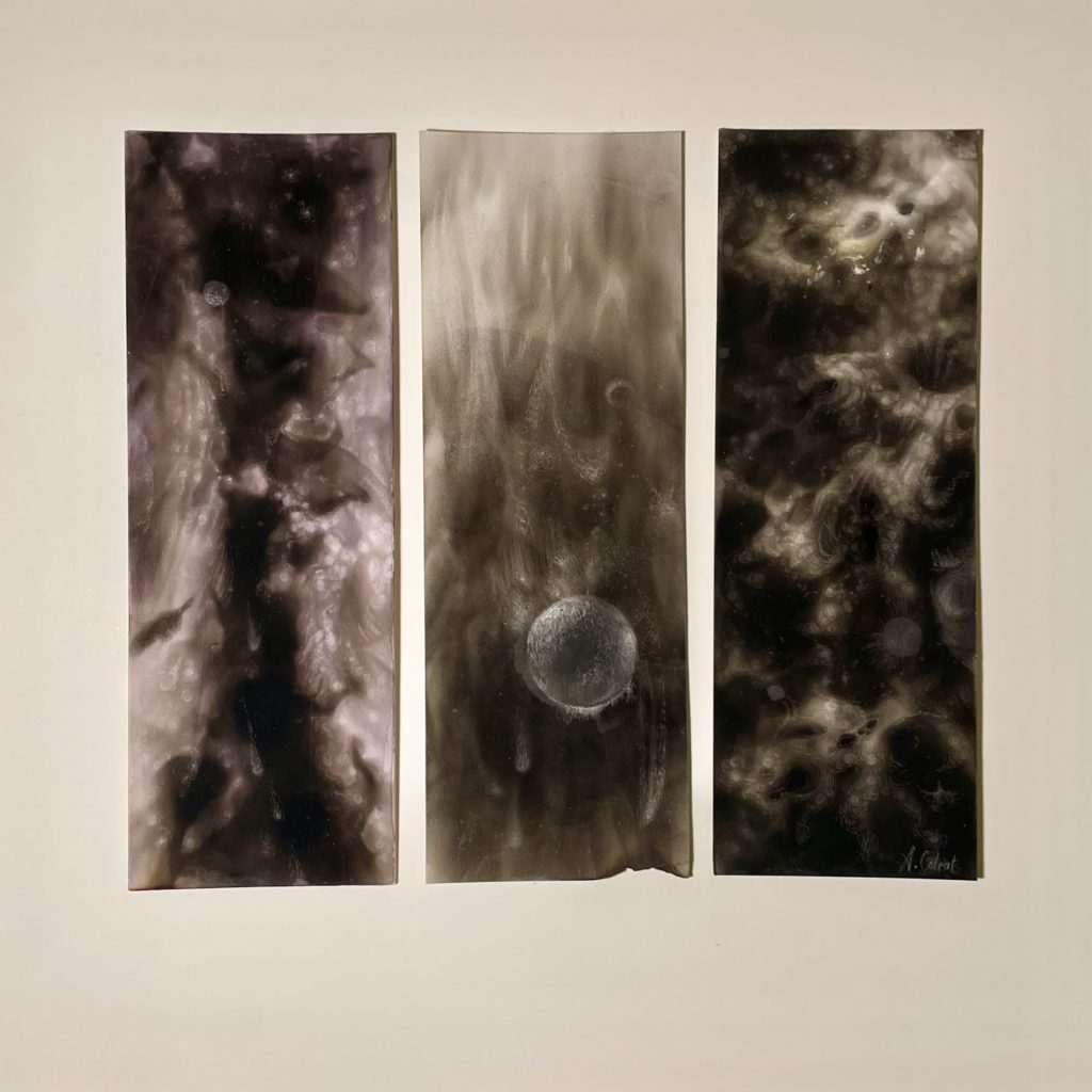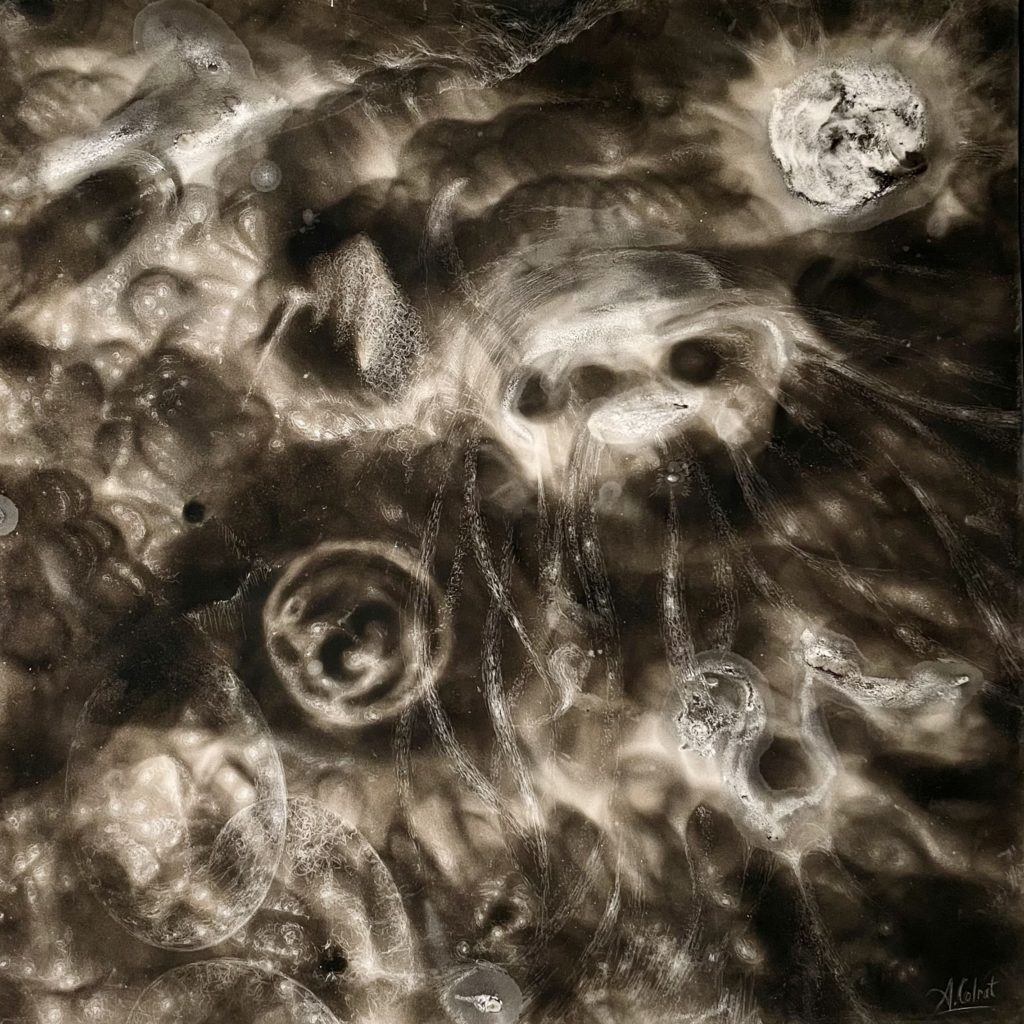 Photographe engagée, Philippine De Joussineau interroge notre rapport au monde en brouillant les frontières entre visible et invisible. Son travail s’ancre dans une recherche plastique nourrie par la spiritualité, les sciences et la philosophie du vivant. Elle privilégie les procédés argentiques et les tirages alternatifs, qu’elle détourne pour créer des œuvres aux matières sensibles et vibrantes. Ses portraits, cuits au feu ou au sel, se transforment jusqu’à devenir vibration pure. Elle s’intéresse à la mémoire du corps, à la trace laissée par l’absence, au silence comme présence. Dans sa série autour de l’élément feu, elle interroge la transformation, l’absence, le corps comme empreinte. Un travail profond, sensoriel, entre photographie argentique et alchimie.