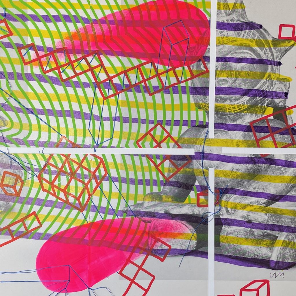 Raphaël Lam est architecte DPLG, professeur d’architecture, youtubeur, blogueur, drag queen, acteur et artiste peintre. Entièrement tourné vers des pratiques artistiques, il construit sa vie comme un terrain d’exploration où chaque facette nourrit l’autre. “J’ai trouvé un équilibre dans ma vie que je considère comme une exploration. Qui sait ce que je ferai ensuite ? “ Pour l’exposition des 30 ans de la galerie Autour de l’Image, il présente une œuvre née d’une exploration esthétique mêlant médiums et supports variés, fidèle à son approche transversale de la création et à son regard curieux sur le monde.