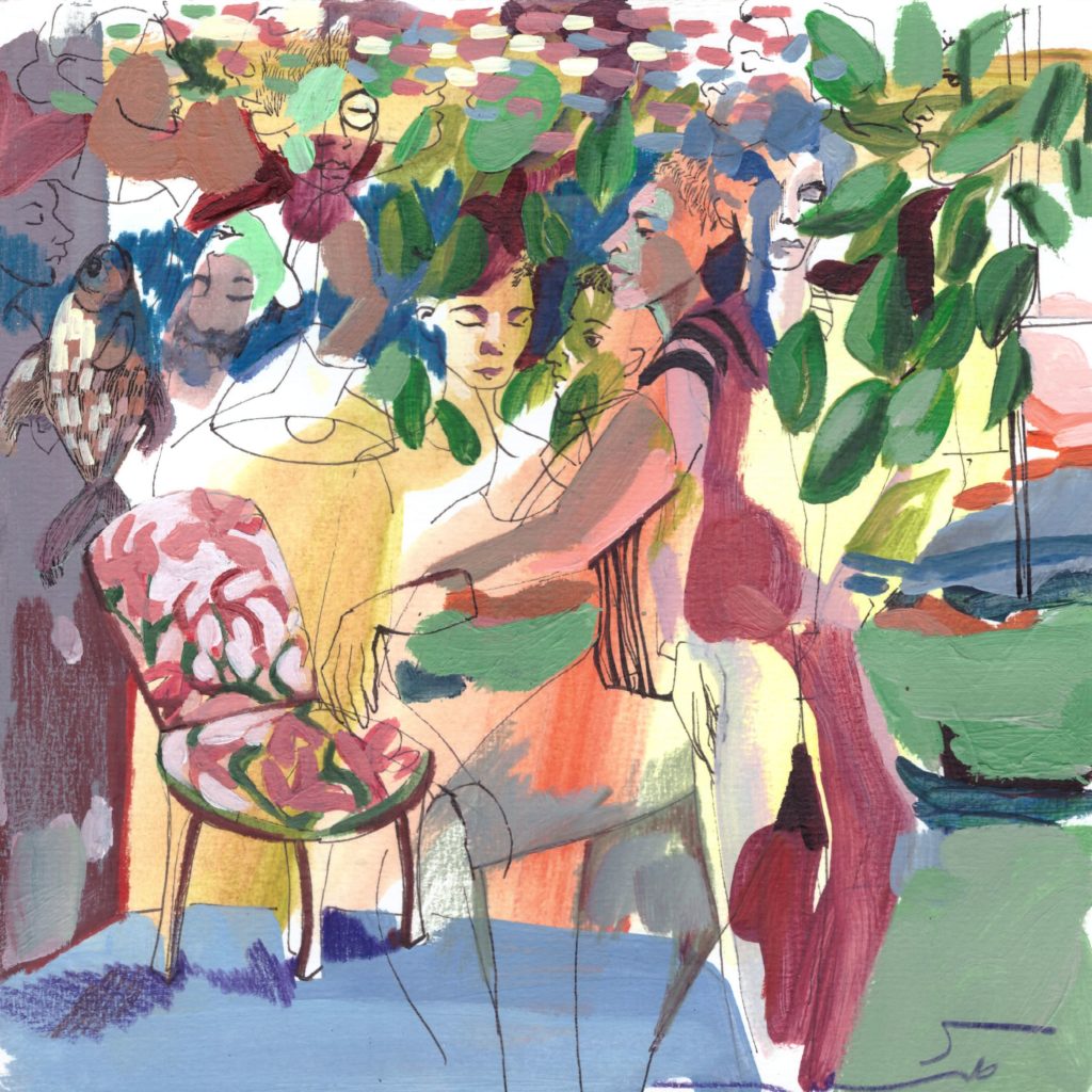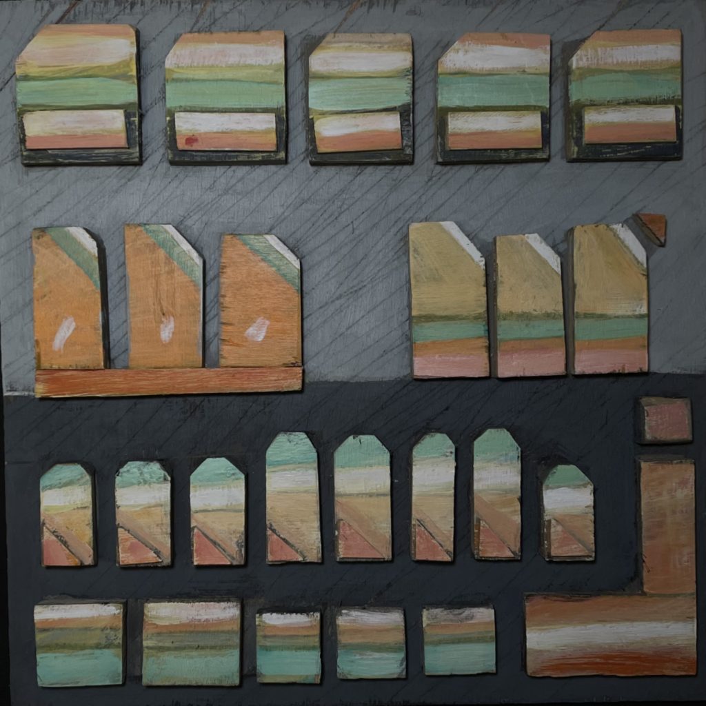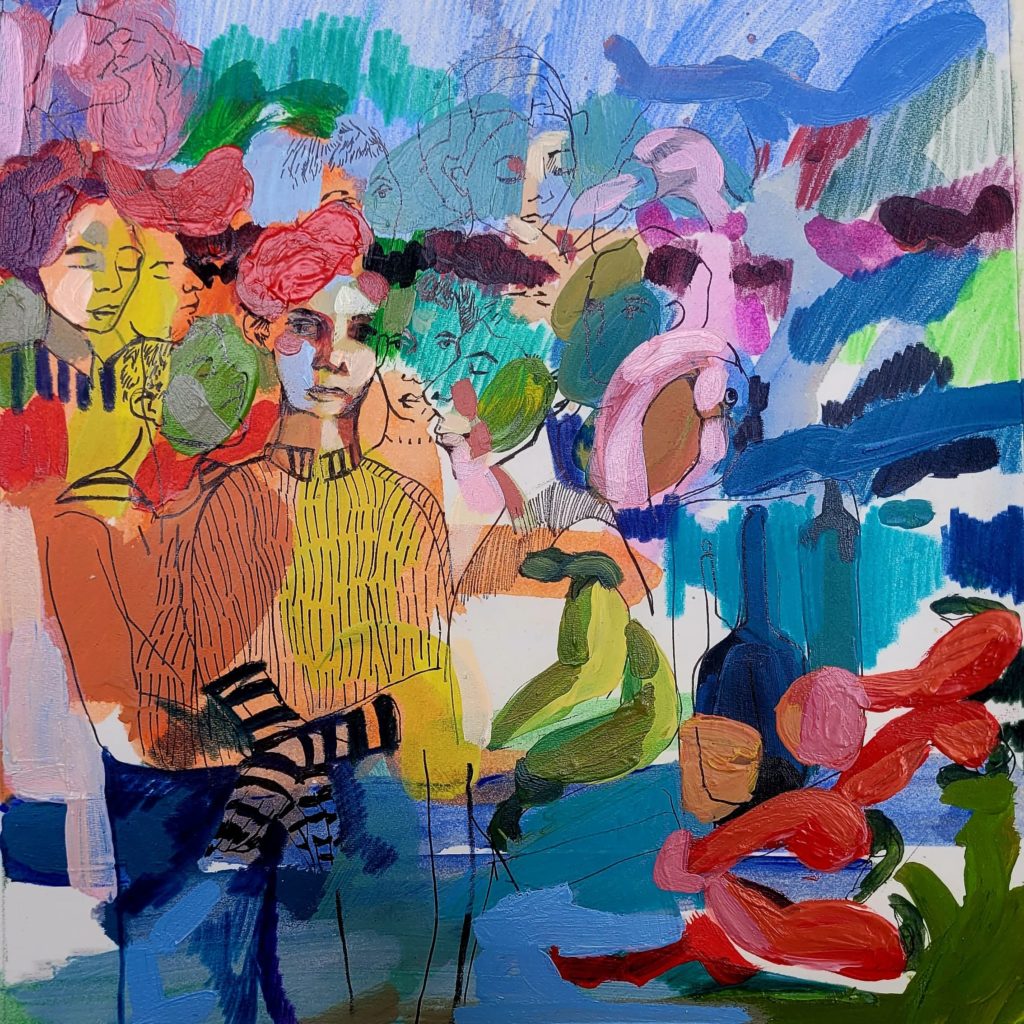 Hélène Lameloise développe une pratique picturale intuitive nourrie par son parcours entre collage, peinture à l’huile et aujourd’hui acrylique “ma façon de travailler reste la même ”intuitive“. Chaque tableau naît dans l’instant, à l’écoute du geste et du ressenti. Sur carton, elle compose des équilibres sensibles entre formes et couleurs, cherchant une harmonie intérieure. “J’aime assembler formes et couleurs selon mon ressenti, je cherche une harmonie entre elles, une cohérence, que tout ne soit pas là par hasard tout en laissant le hasard faire les choses”.