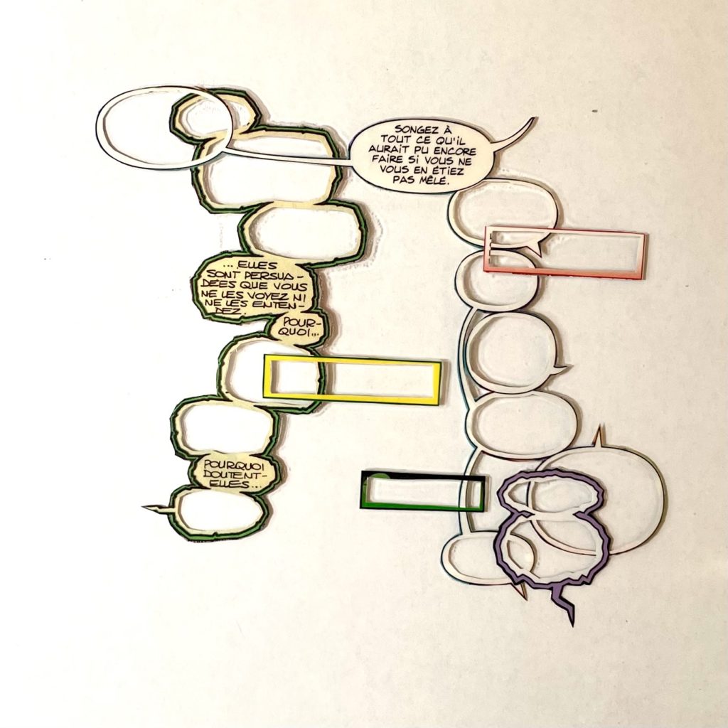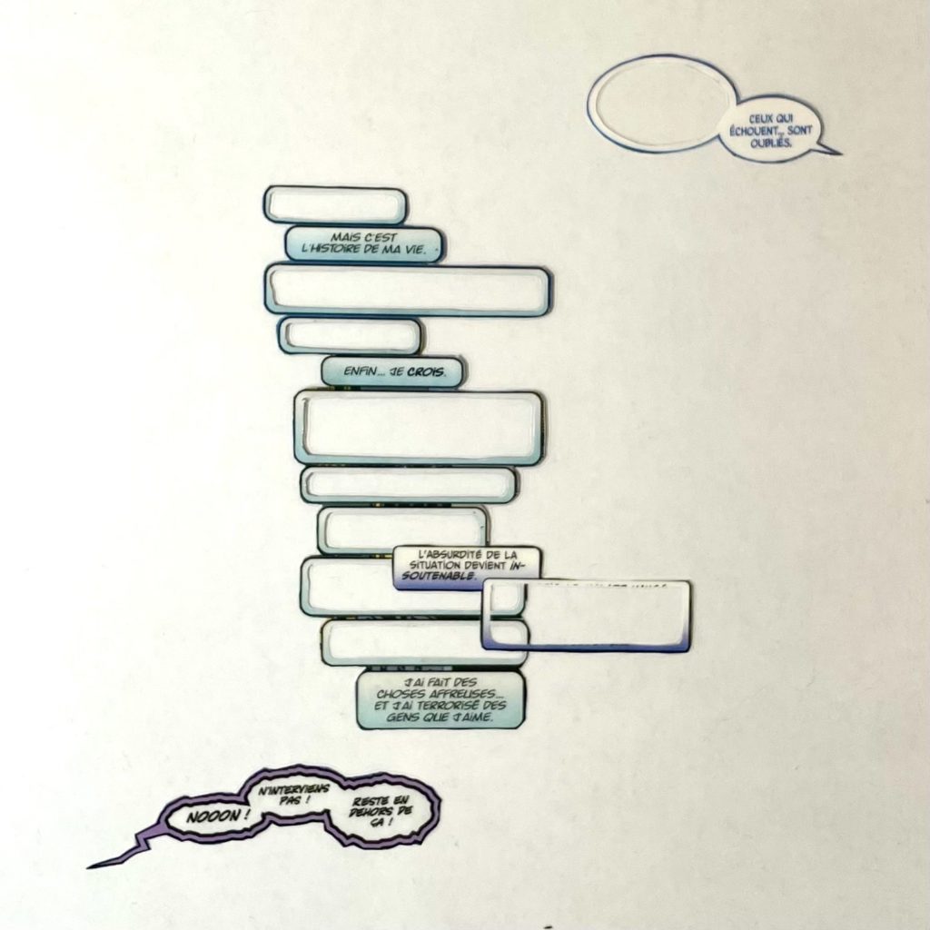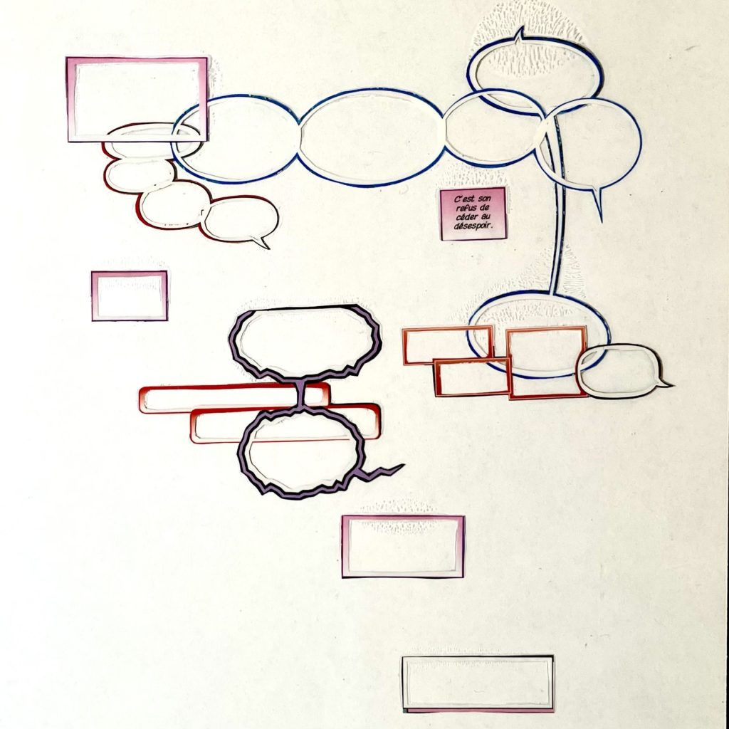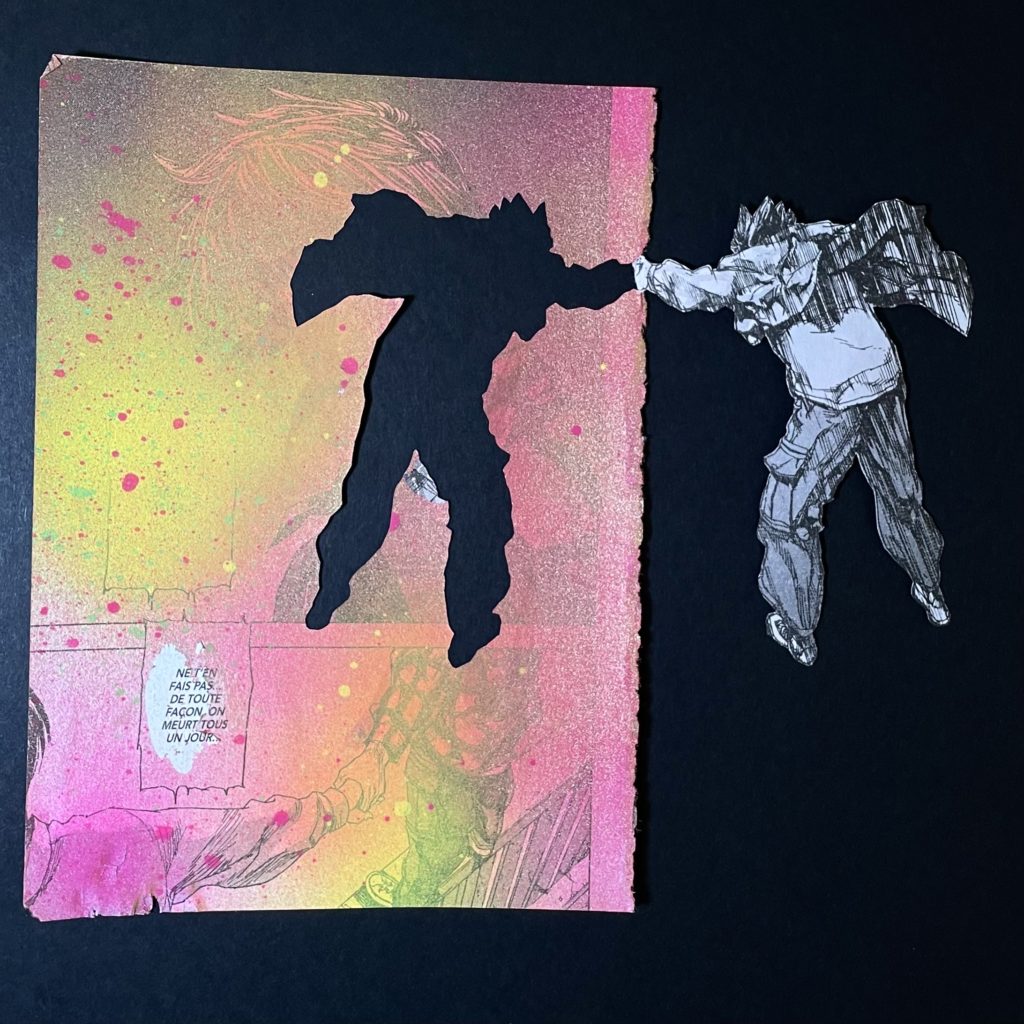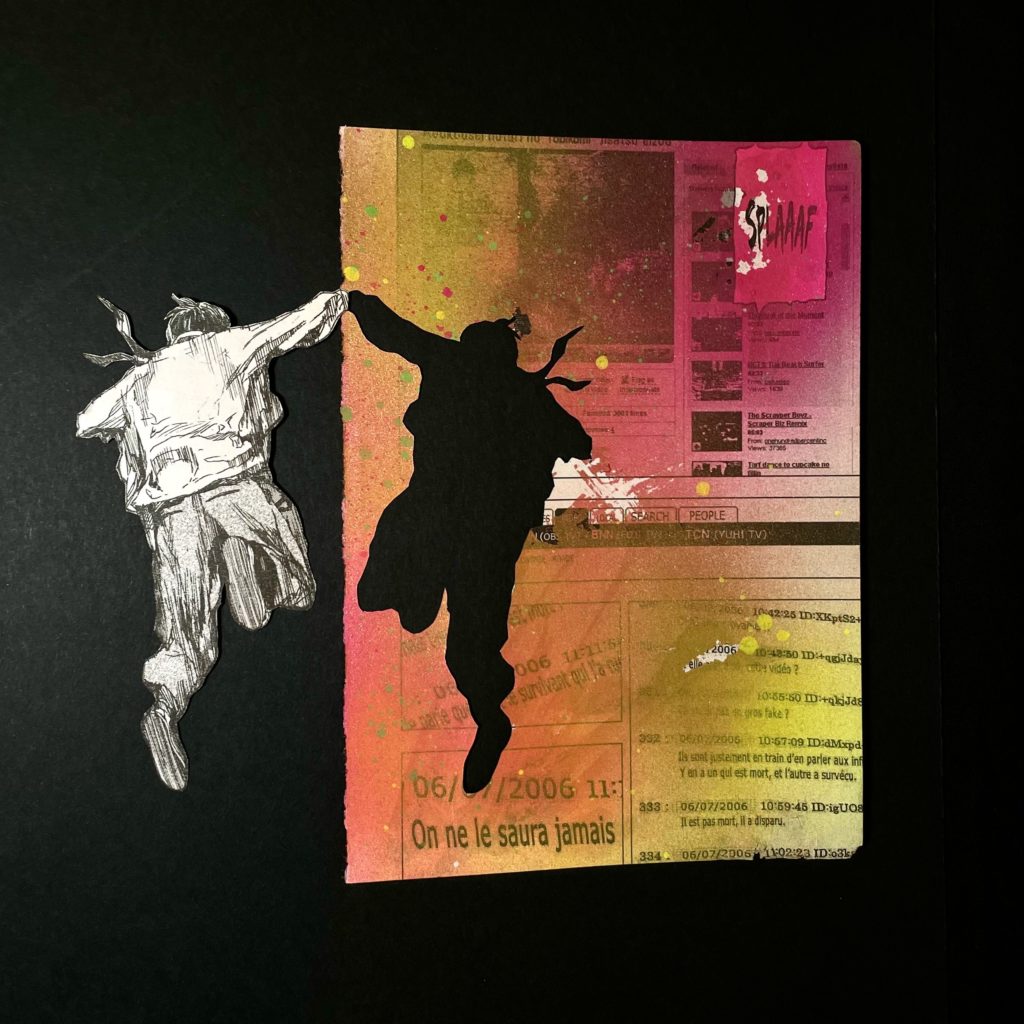 Mathias Schmied développe un travail singulier où le vide et l’absence deviennent matière. À l’aide de scalpels, gommes liquides, bombes de peinture, encre ou aquarelle, il intervient sur des papiers imprimés (comics, journaux, magazines) ou des supports bruts. Son univers emprunte à la Beat Generation, au Pop Art, à l’Oulipo, au minimalisme et à l’art conceptuel. Pour les 30 ans de la galerie, il présente une série qui interroge la construction du sens à travers l’effacement, la fragmentation, le bruit. Les failles y deviennent chemin.